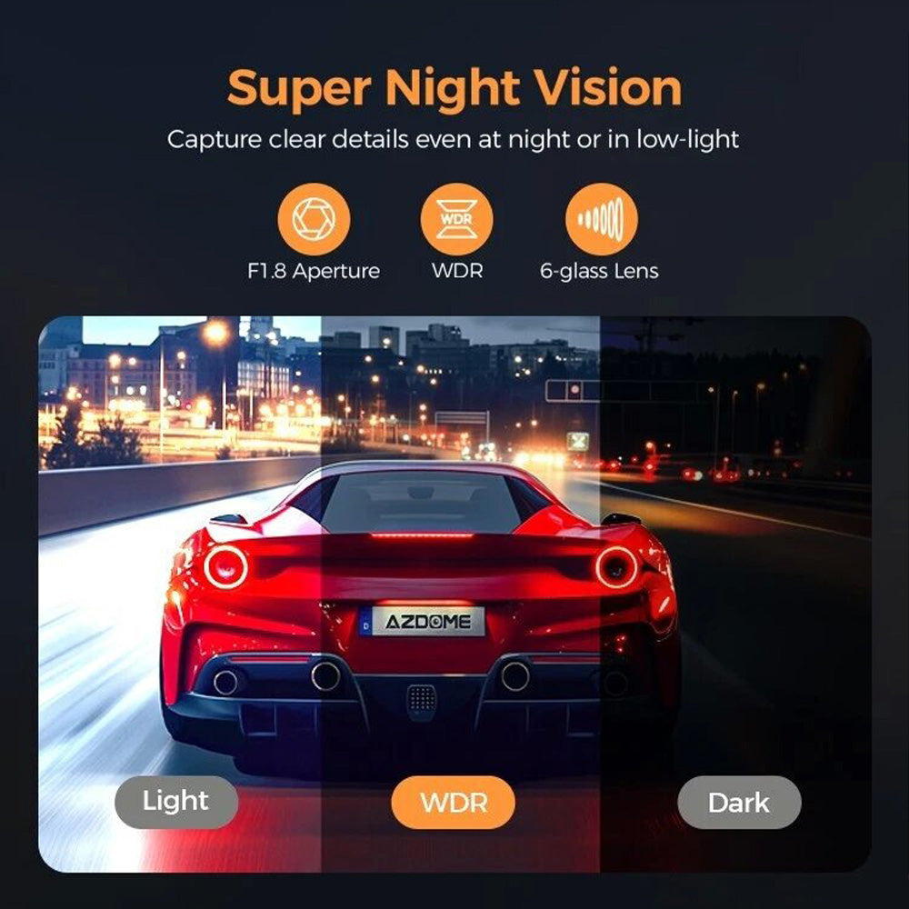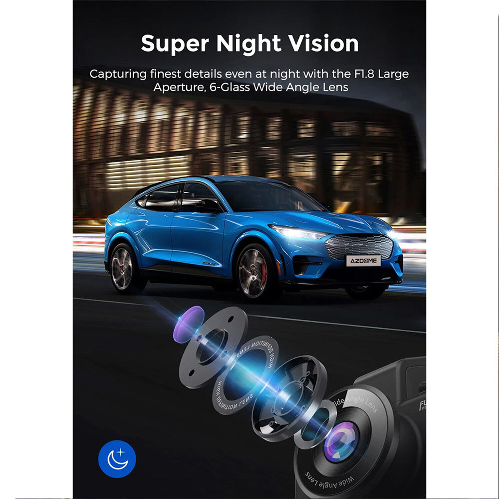 - Advanced Sensor & Lens:SC401AI sensor with F1.8 aperture captures more light for better night clarity. Wide-angle lenses (150° front, 130° rear) reduce blind spots.