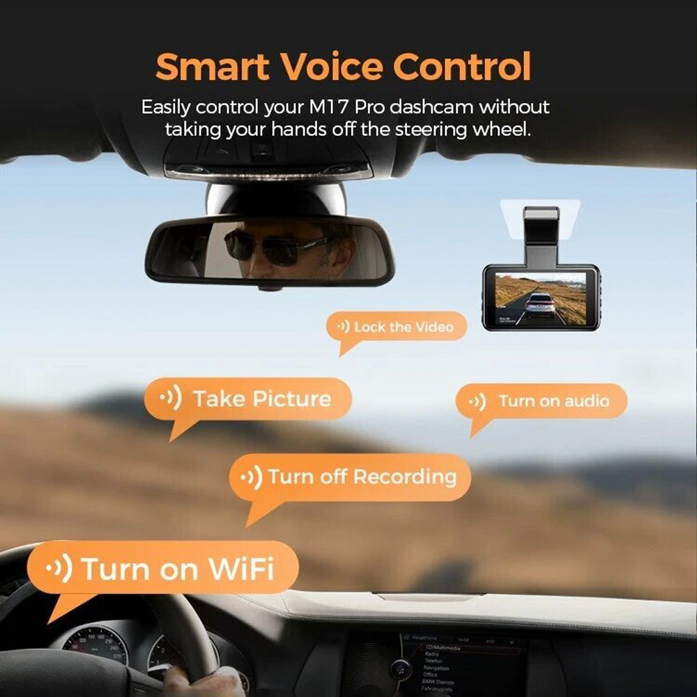 The M17 Pro Dash Cam is a powerful, high-definition car camera designed to capture every detail of your journey. Equipped with a 3-inch IPS display, advanced SC401AI sensor, and a 150° ultra-wide front lens, it delivers crystal-clear footage at up to 3200×1800 resolution. With built-in Wi-Fi 6, Bluetooth, voice control, and ADAS support, this compact dash cam offers the latest in automotive safety and convenience. Whether you're commuting, road-tripping, or parking, the M17 Pro has you covered with 24-hour monitoring, loop recording, and intelligent features.