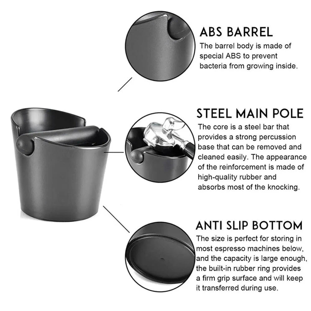 Black Bucket Coffee Waste Container Tamper Tube Bin Knock Box Espresso Grinds