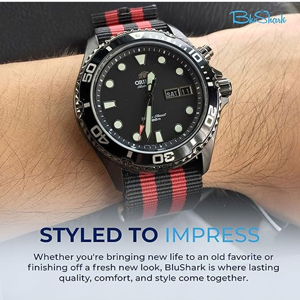 Breathable Watch Straps for NATO Style Wristwatches Band Black&Red