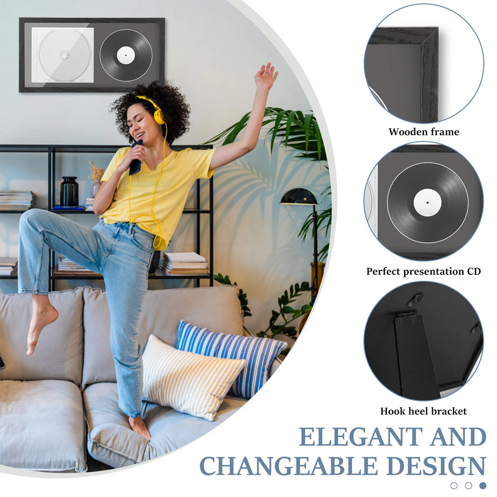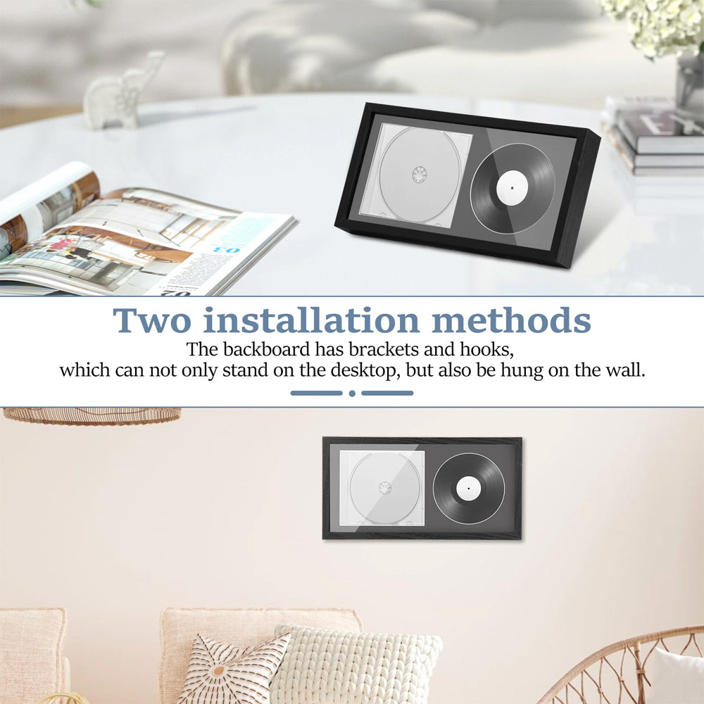 CD Frame Display Case Wood CD Display Frame With Bracket Hook Double