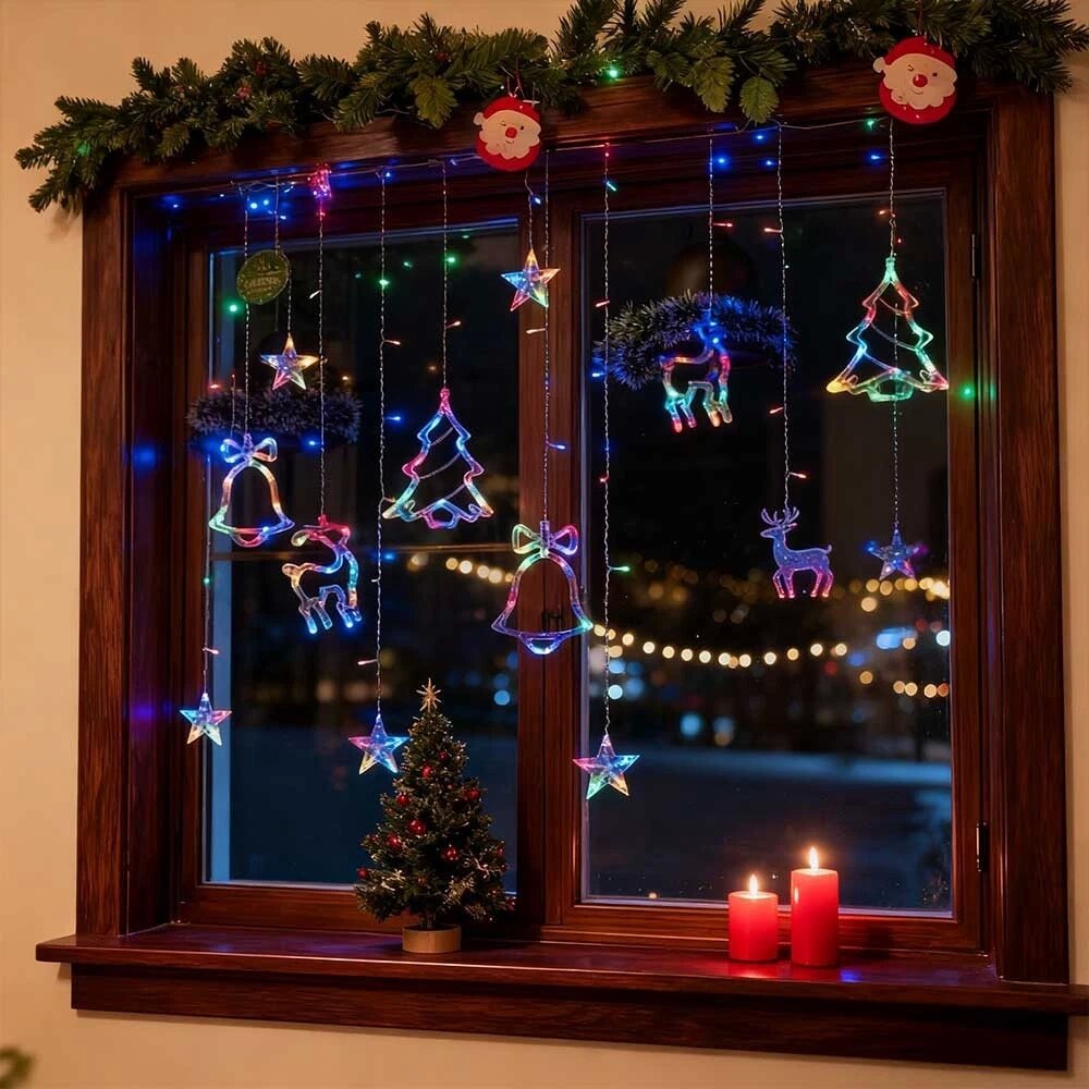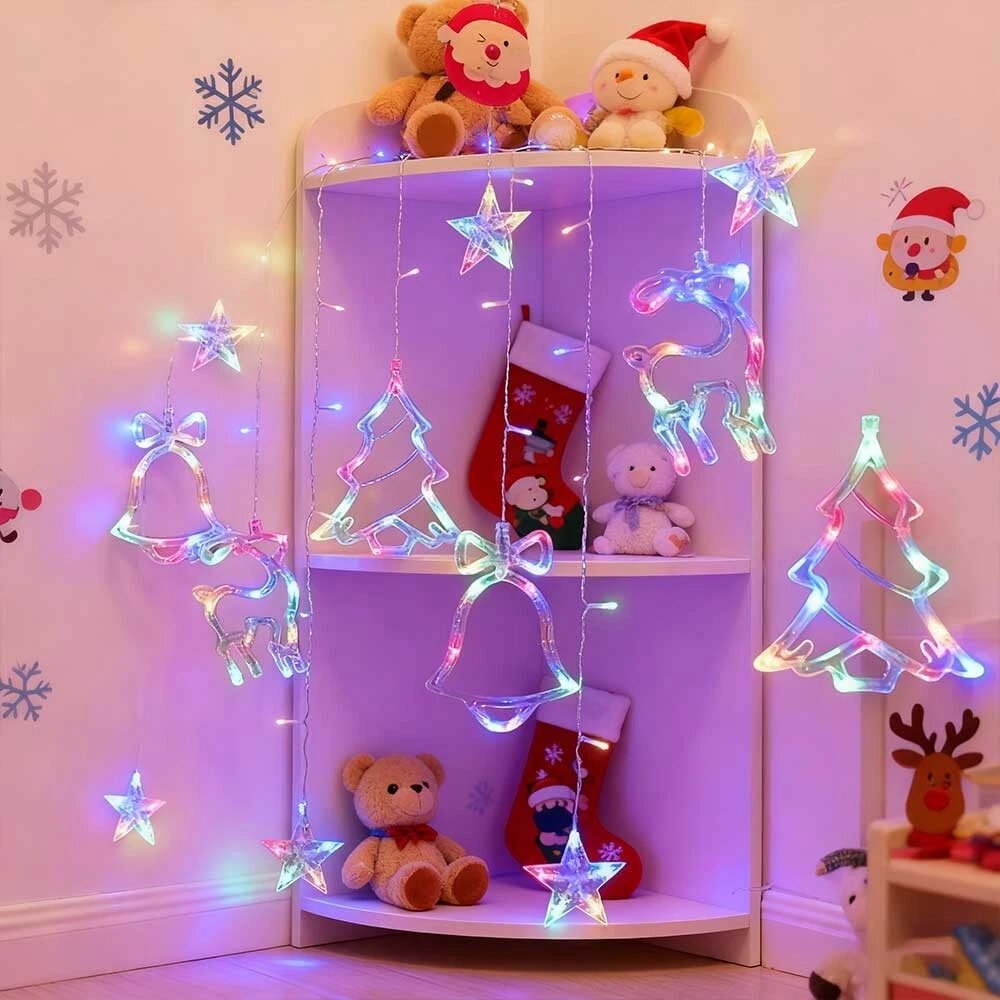 Christmas Hanging Deer Bells Curtain String Lights Garland Fairy Light Window 3M