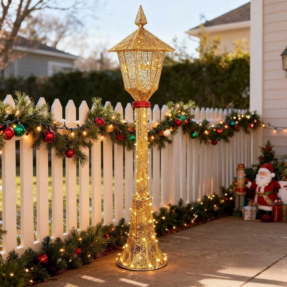 Christmas Lamp Post with LIghts Indoor Outdoor Solar and Plug in Light Garden