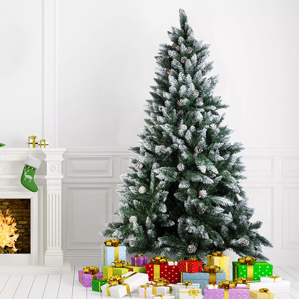 Christmas Tree 2.1M Xmas Tree Bushy Pine Cone Decorations Snowy White