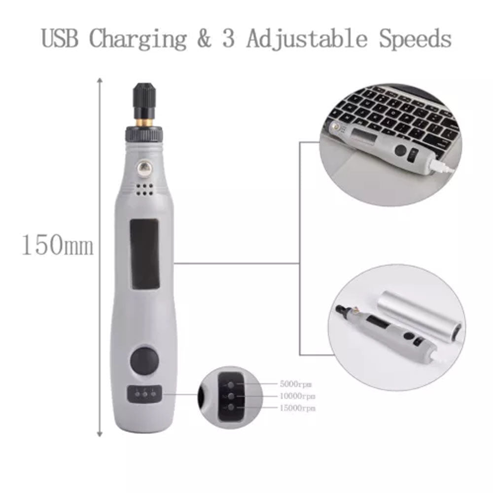 The 160PCS Mini Electric Grinding Pen Set is a versatile and compact rotary tool designed for engraving, polishing, sanding, carving, and drilling with precision. Powered by a rechargeable 3.7V lithium-ion battery, this lightweight tool delivers adjustable speeds (5000–15000 rpm) for a variety of applications, from delicate engraving on wood, jade, and glass to polishing and cutting tasks. Its pen-like ergonomic design ensures comfortable handling, while the USB charging system makes it convenient to recharge anytime, anywhere. Perfect for hobbyists, DIY enthusiasts, and professionals alike.