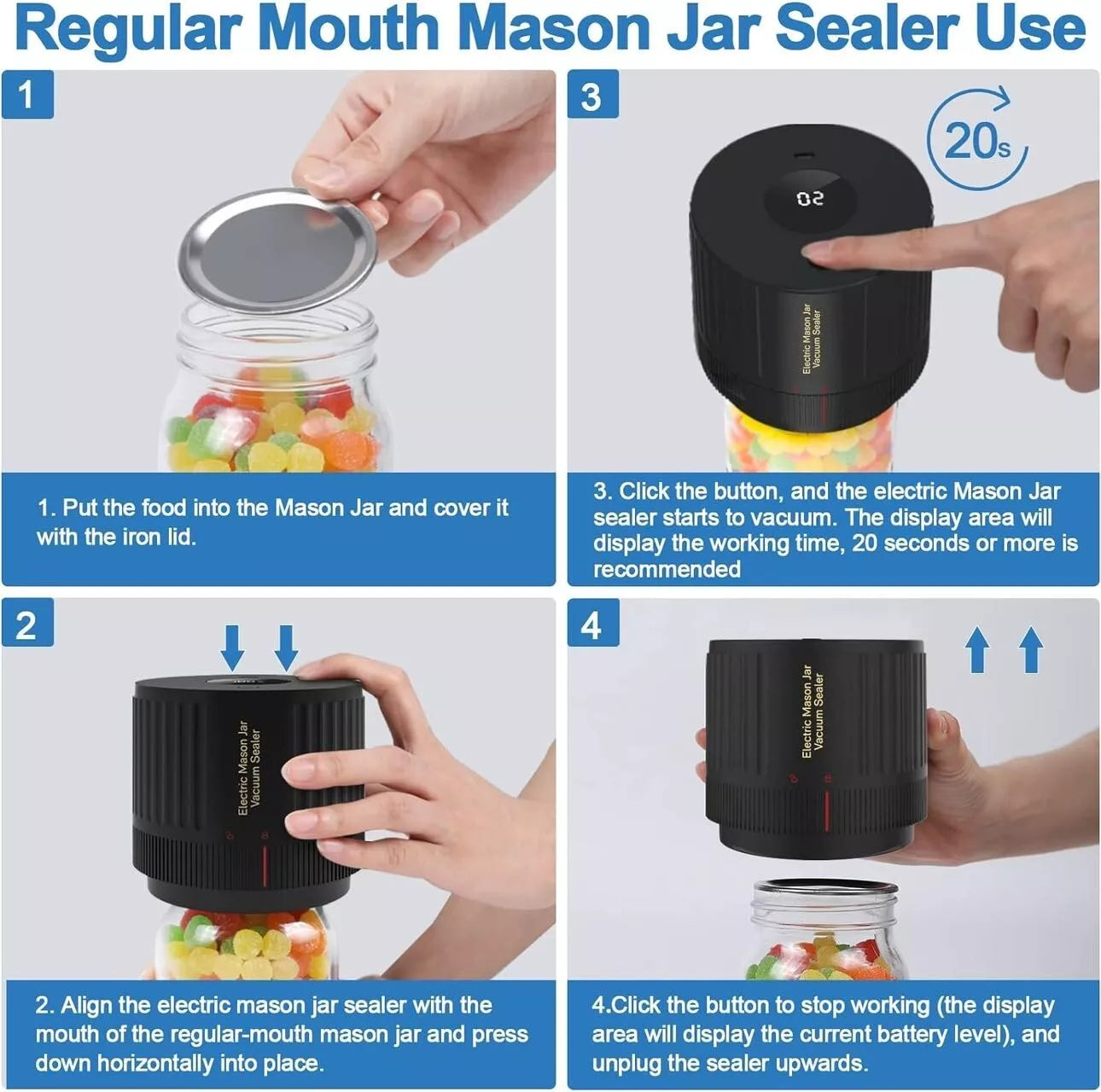 Electric Mason Jar Vacuum Sealer Kit -Wide and Regular Mouth Mason Jars
