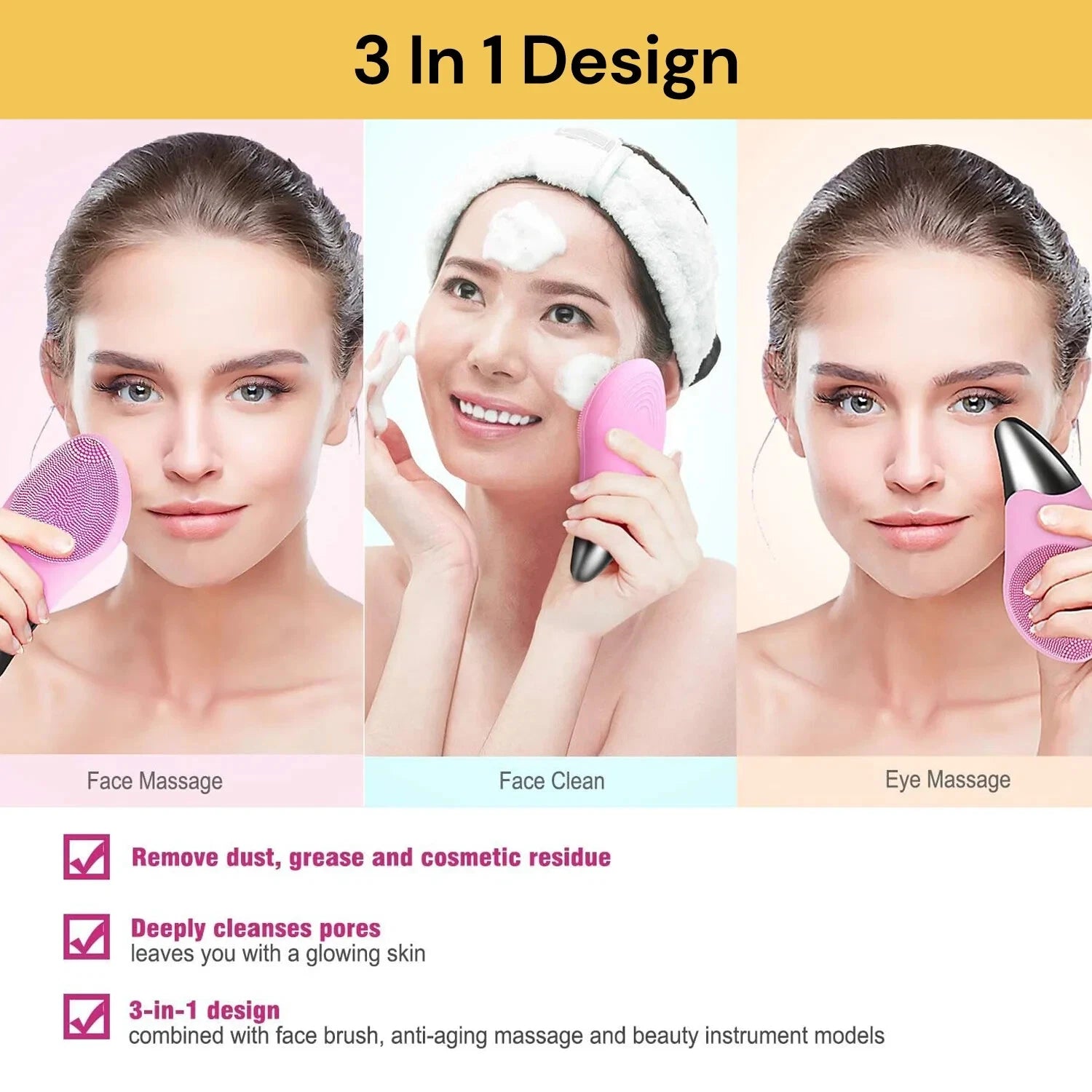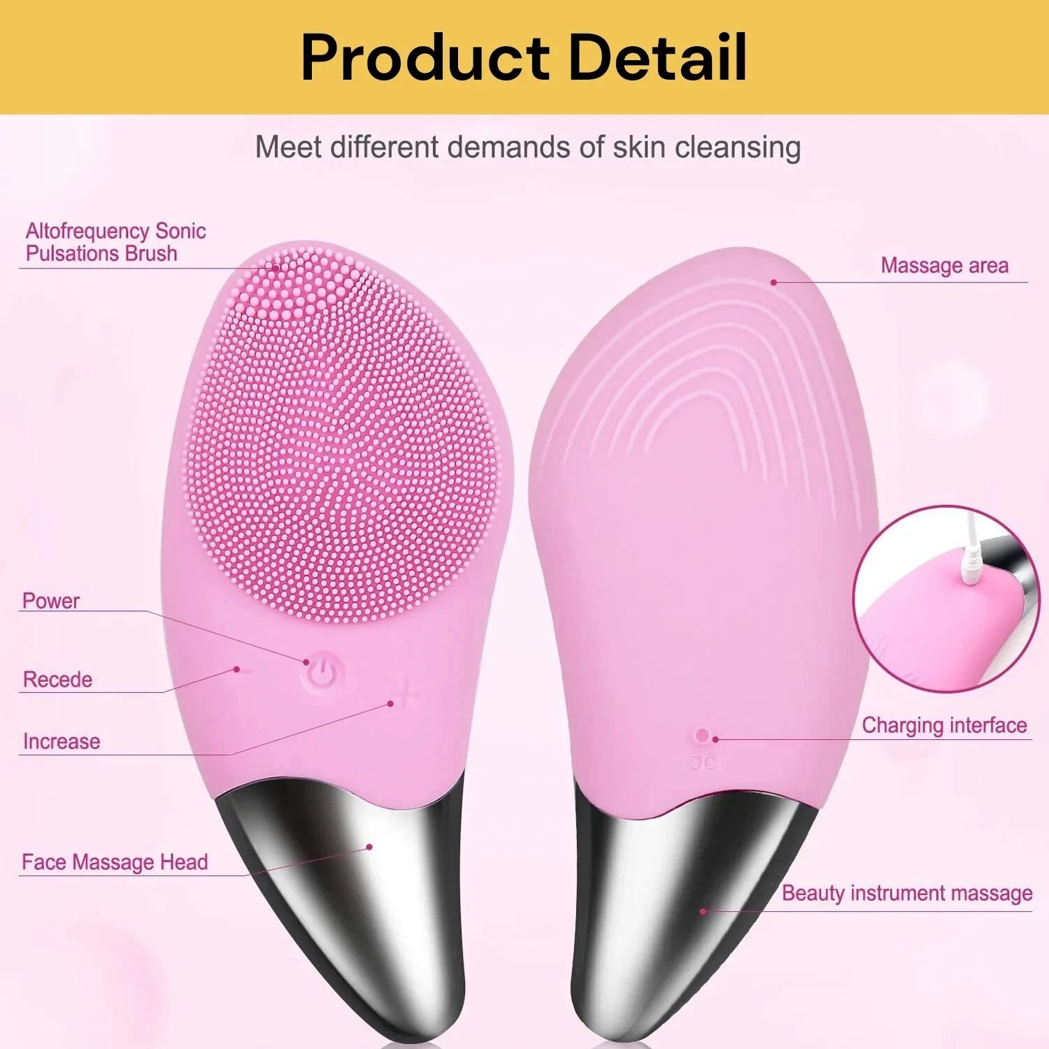 Electric Silicone Facial Cleansing Brush Face Washing Brush Cleaner Massager