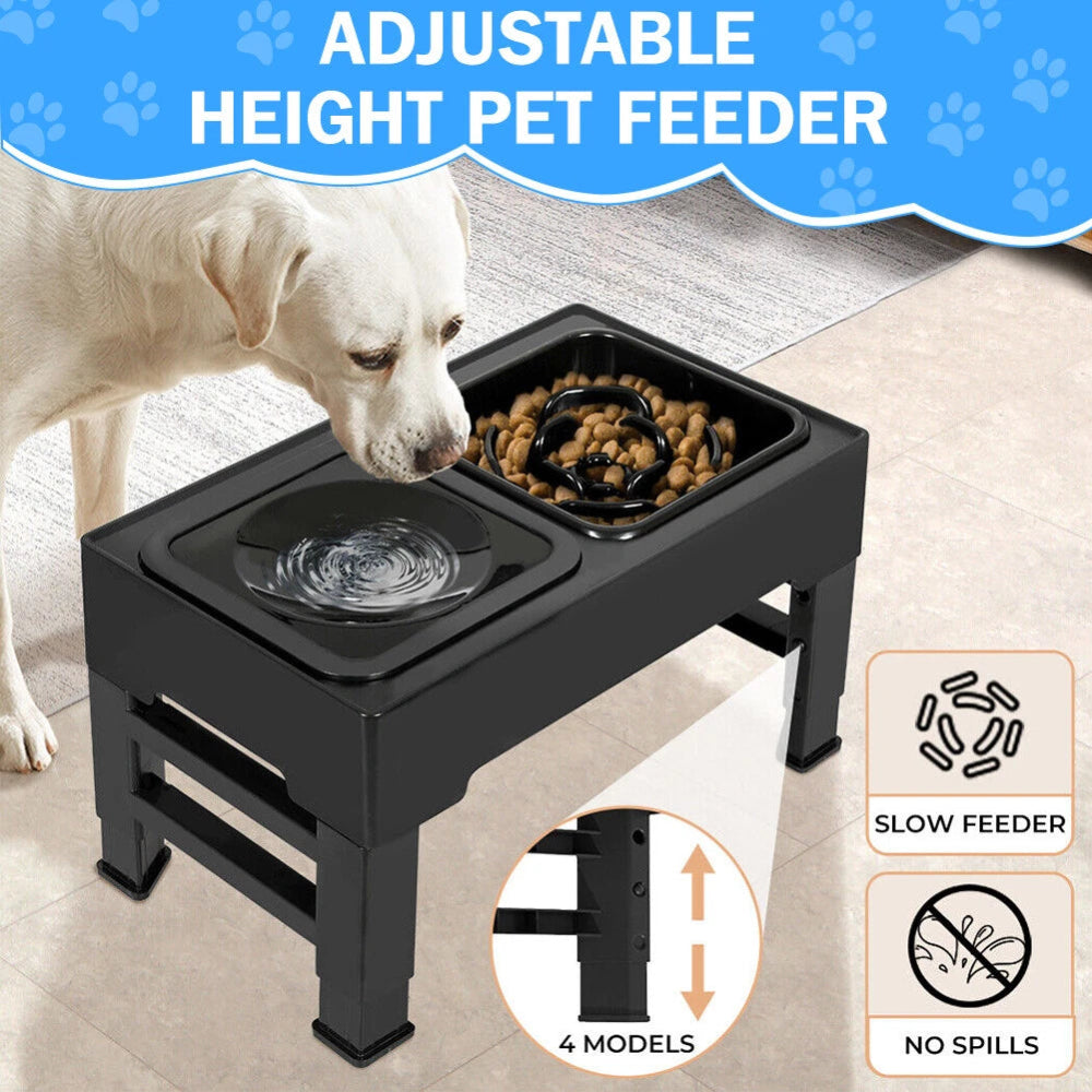 Elevated Dog Pet Feeder Food Water Double Bowl Adjustable Height Raised Stand