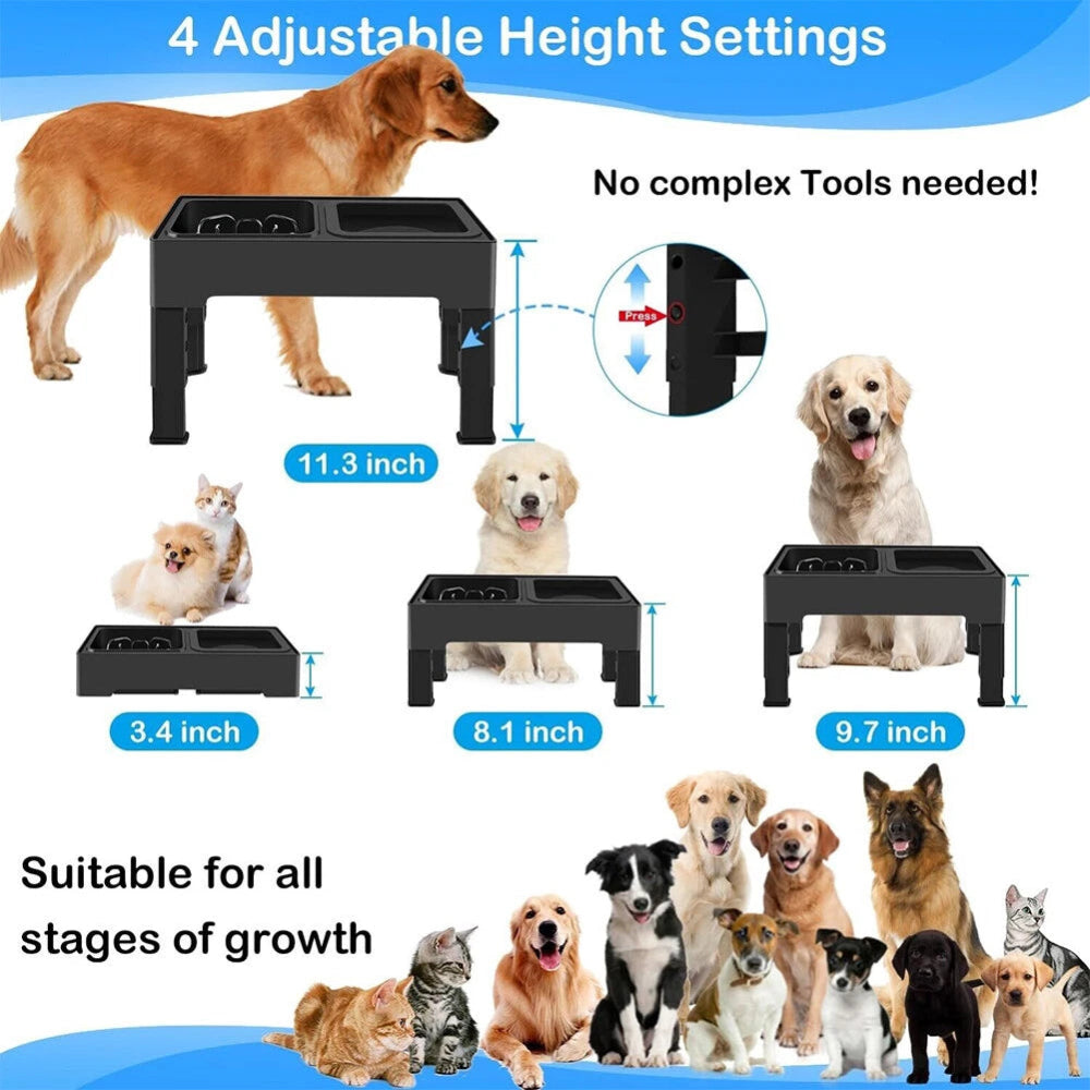 • Adjustable Heights: 4 height options to fit different-sized dogs (and cats).