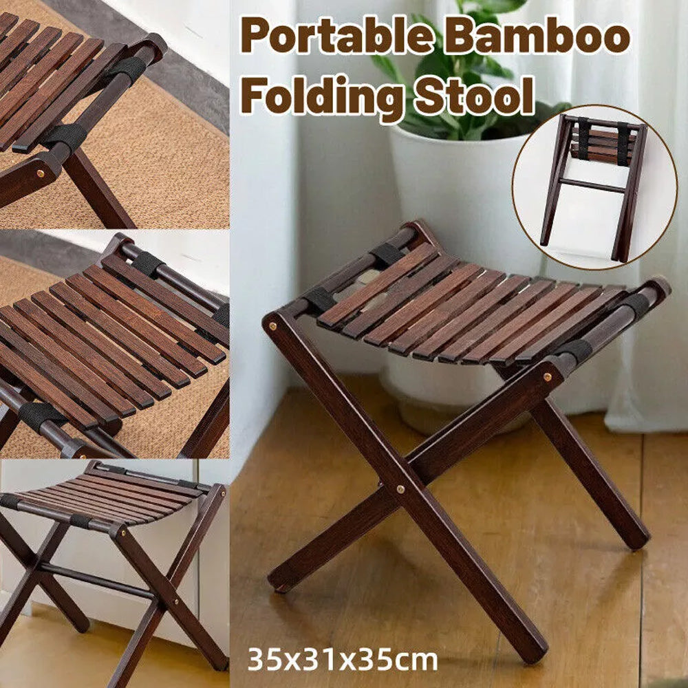 Foldable Bamboo Wooden Stool Small Portable Camping Fishing Seat Outdoor Bench