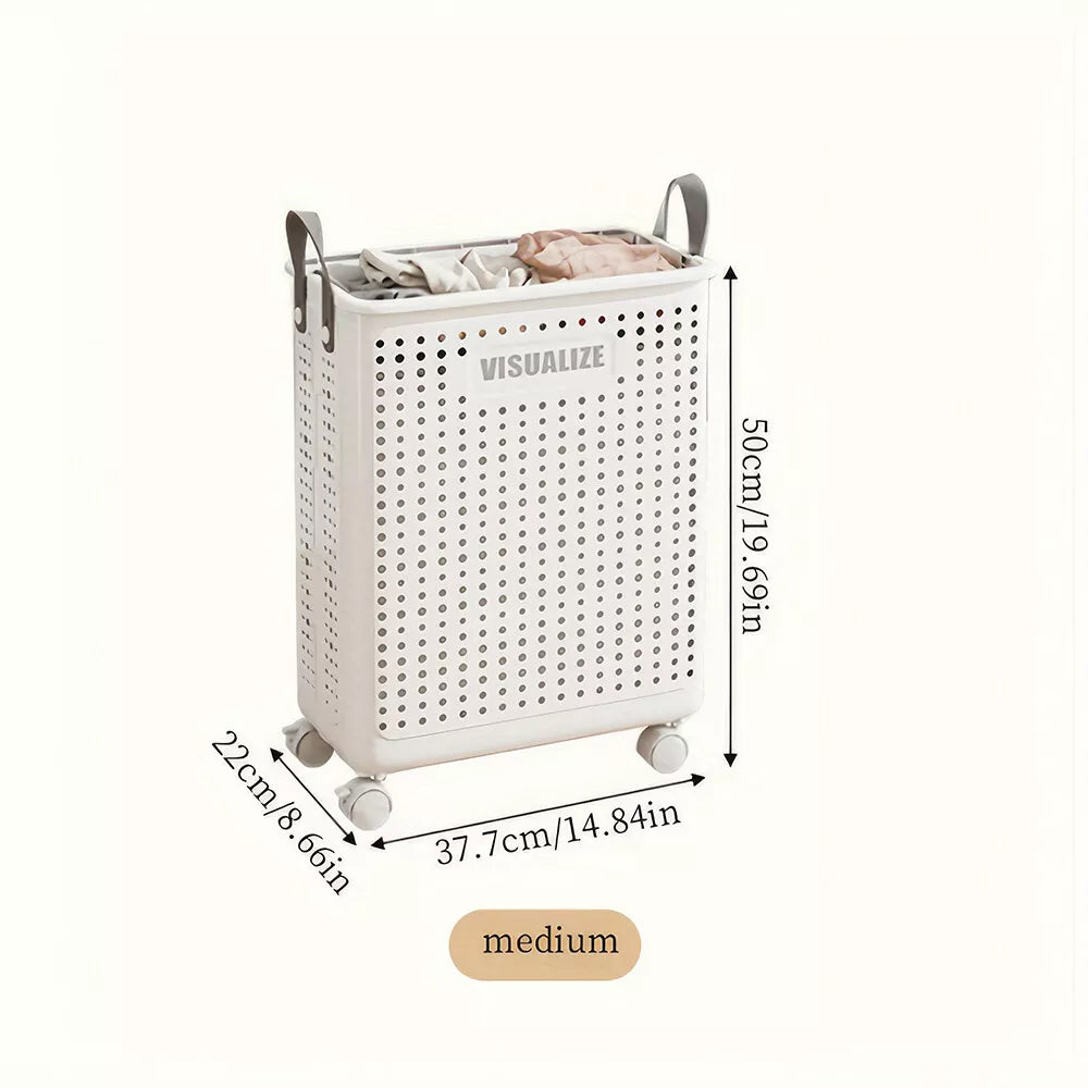 Foldable Laundry Basket Washing Clothes Storage with Wheels Dirty Clothes Hamper M