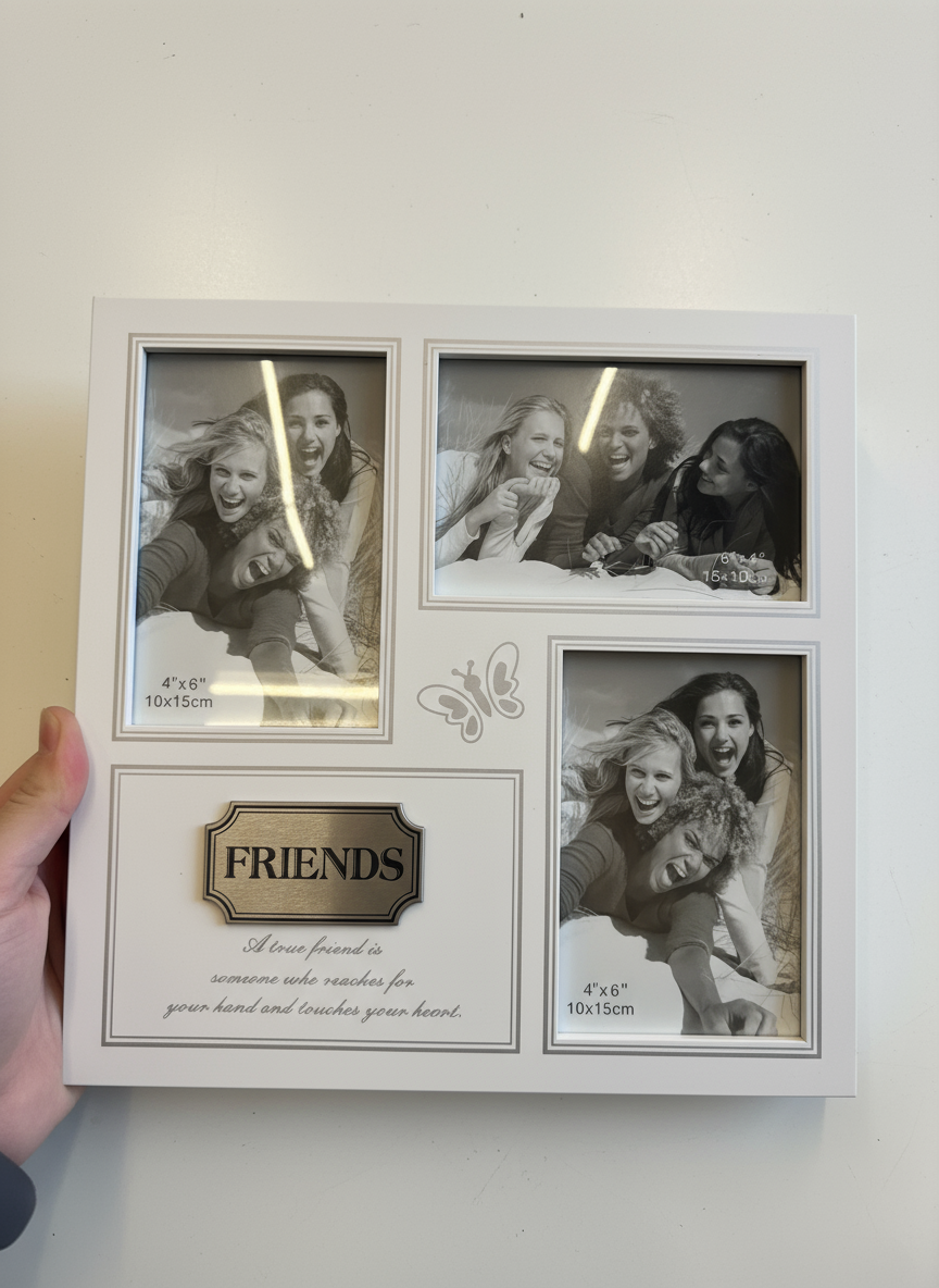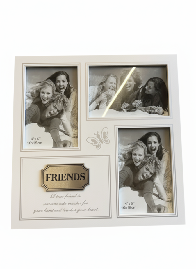 "Friends" Triple Photo Frame – 4"x6" Collage with Inspirational Quote