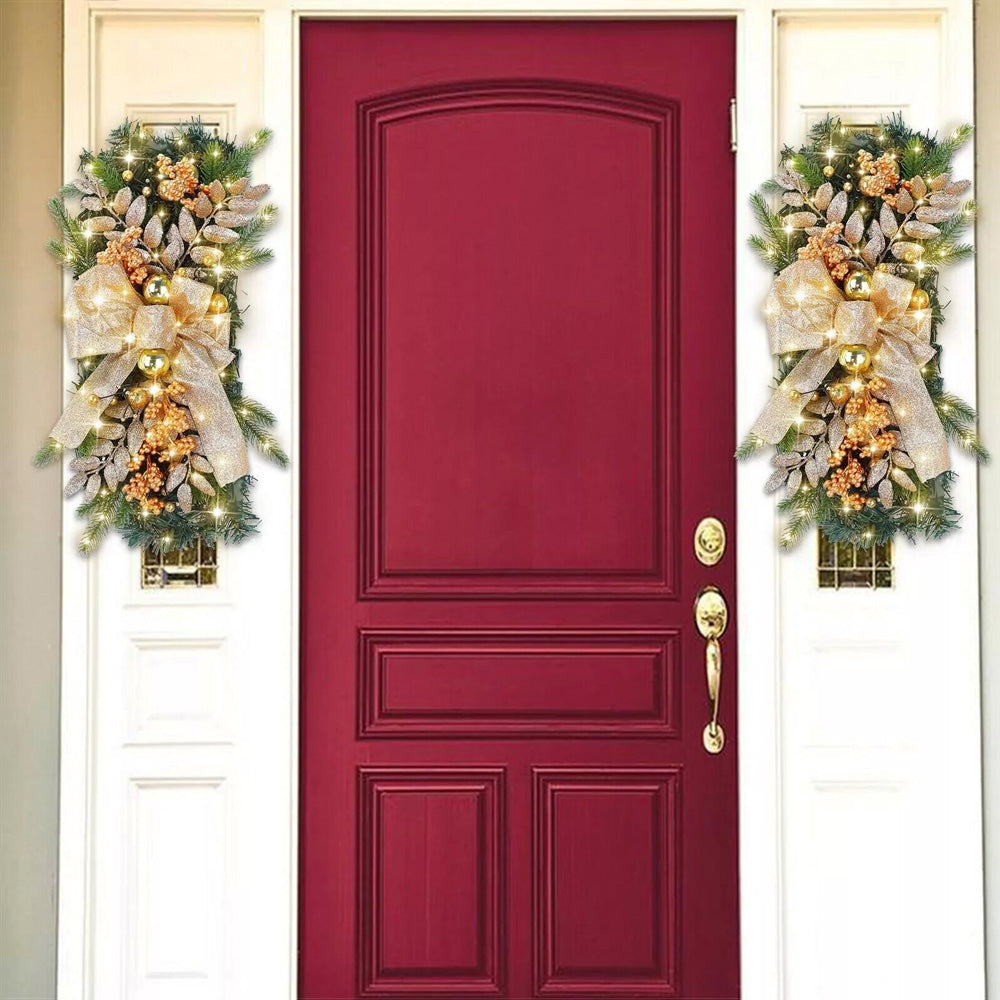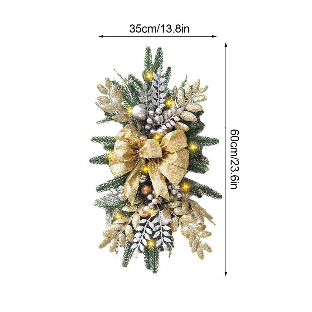 Gold Christmas Garland With LED Light For Staircase Tree Fireplace Door Wreath Decor