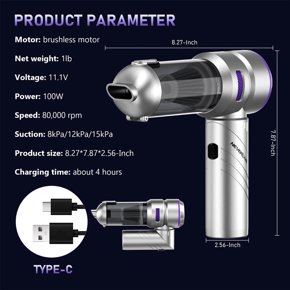 Hand Held Car Vacuum Cordless 15000PA Rechargeable High Power Cordless 80,000RPM