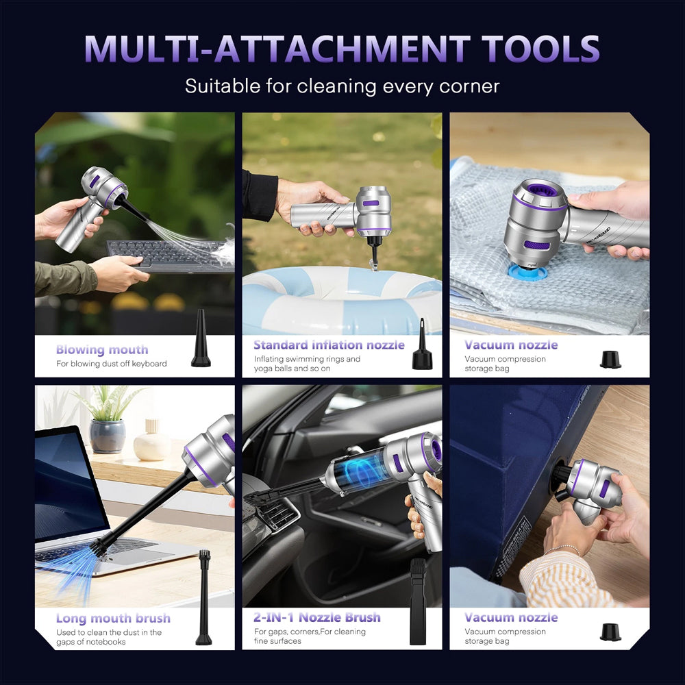 This mini vacuum cleaner features 4-in-1 multifunction, equipped with various accessories to meet diverse needs such as blowing, sucking and... Read more