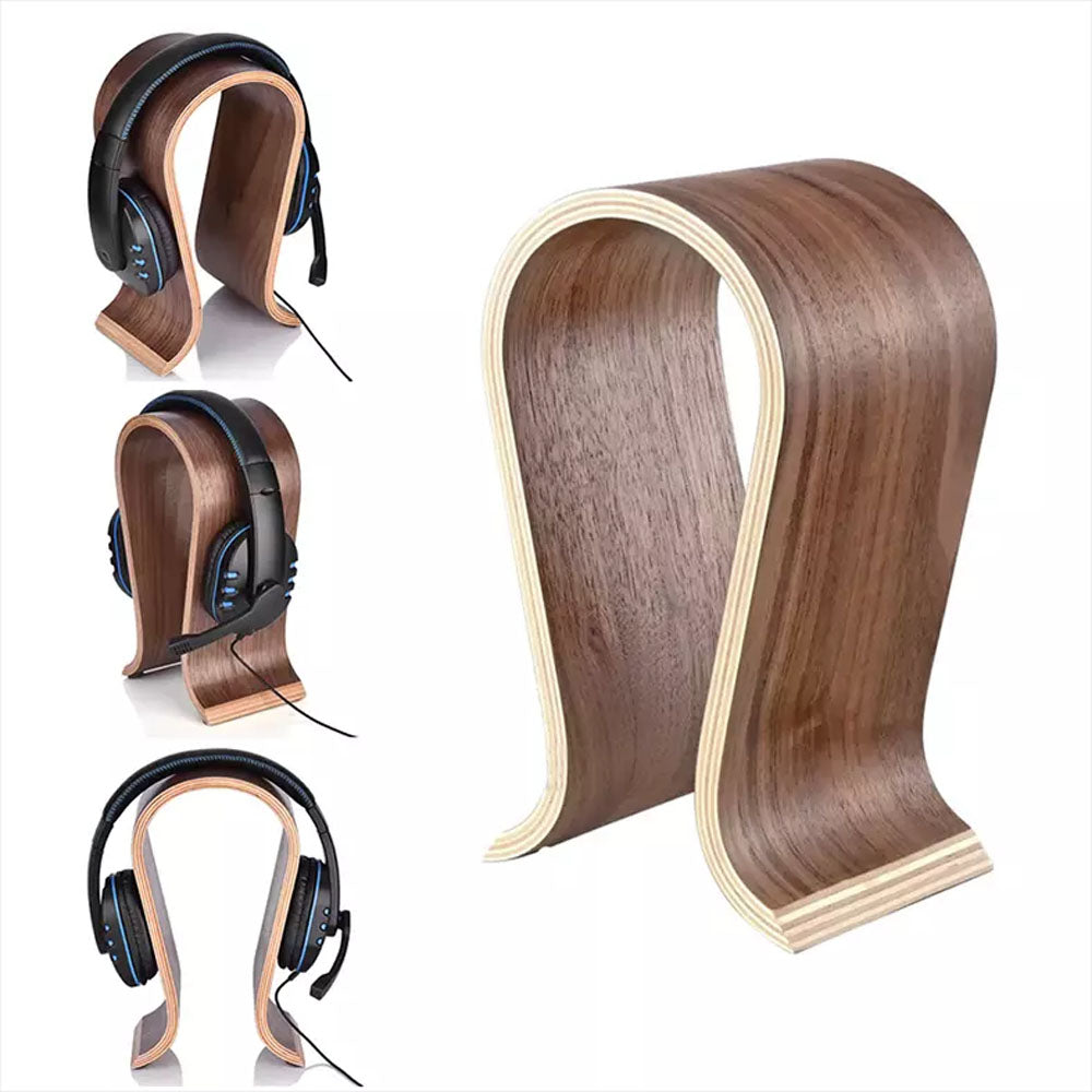 Headphone Stand Wood for Desk Walnut Headset Holder Wooden Display Earphone (A)