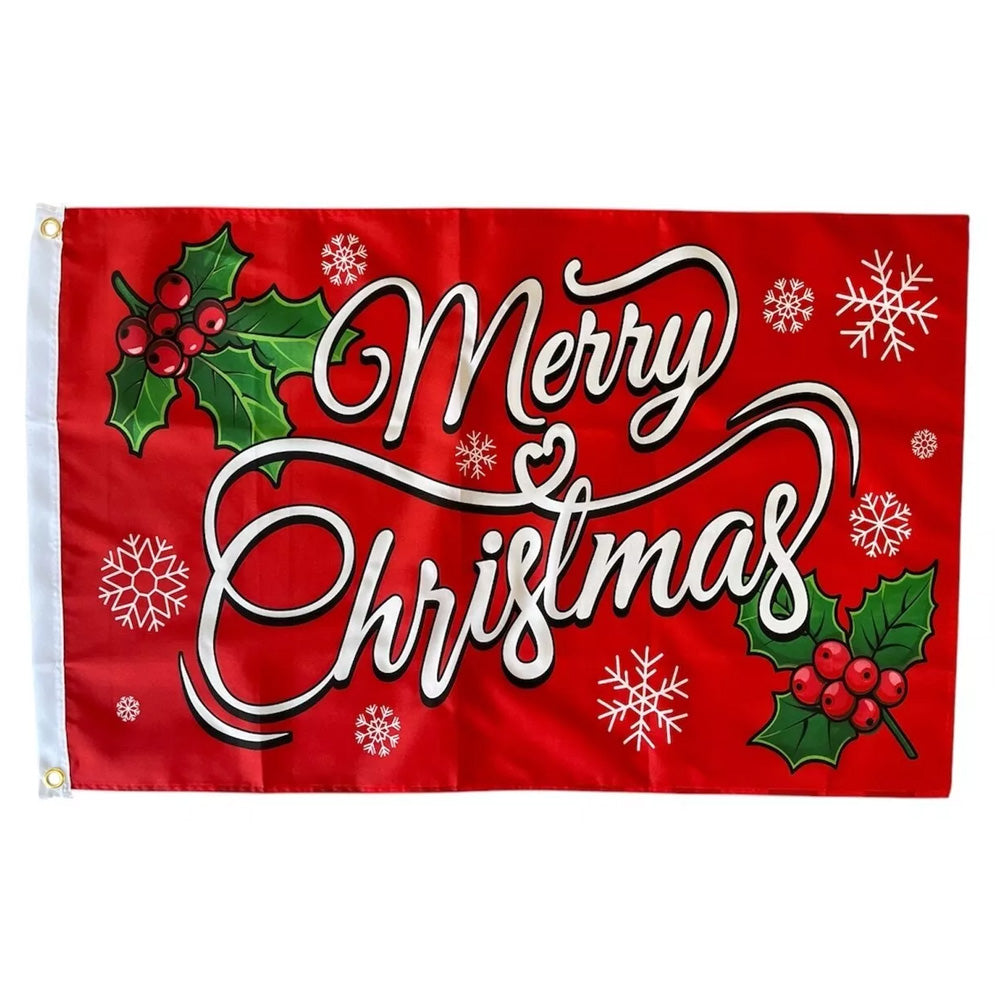 2PCS Merry Christmas Flag 3ft x 2ft / 90 x 60cm Santa Holly Christmas Flag