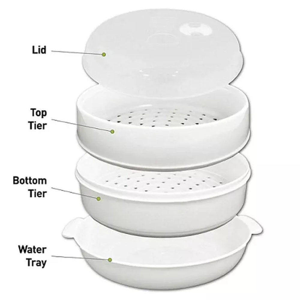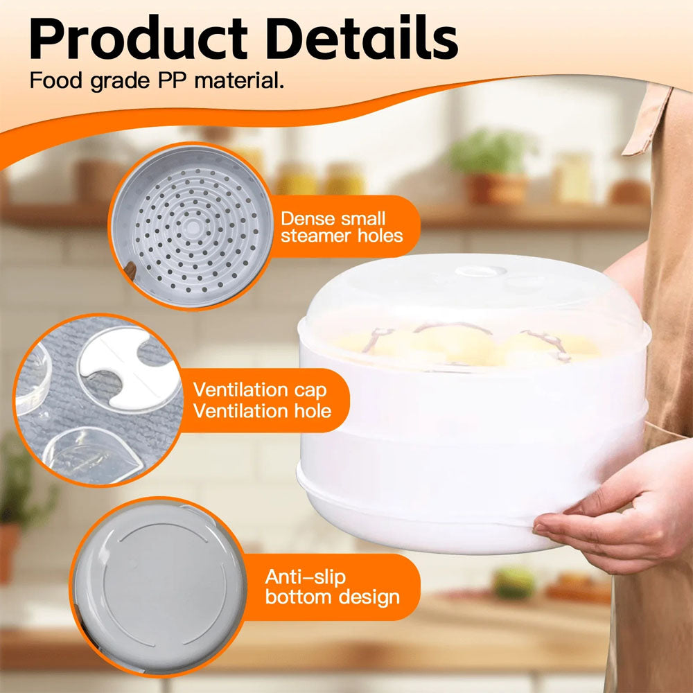 Microwave Steamer 2 TIER Double layer Cooking Meals Vegetables Kitchen Appliance