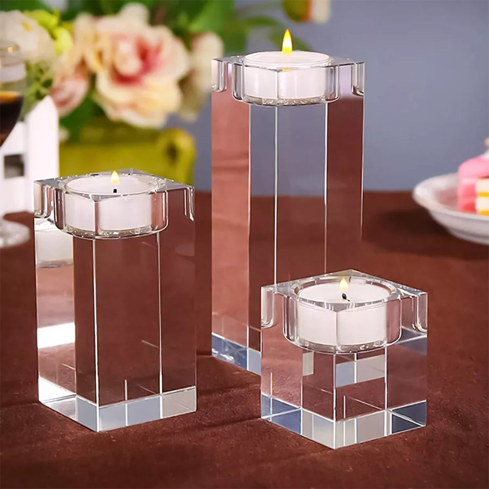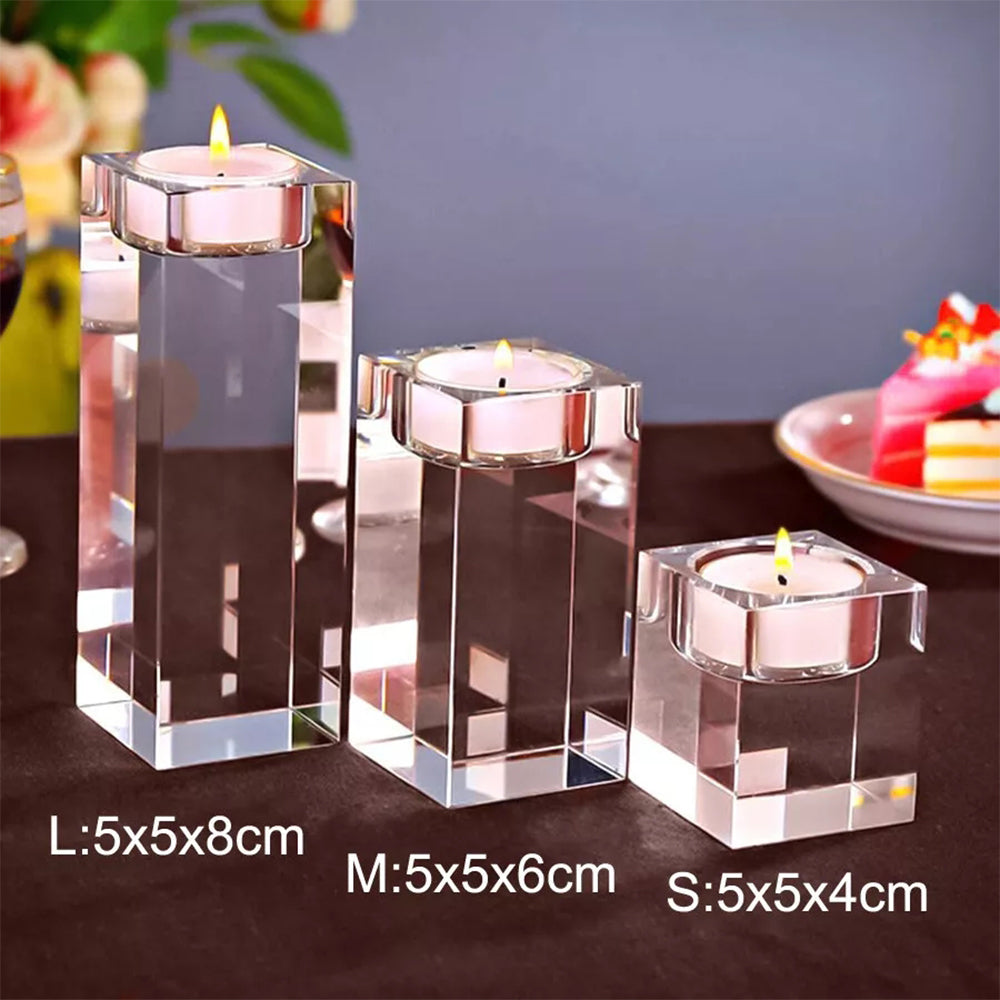 Modern Crystal Glass Cube Candle Holder Tealight Romantic Wedding Christmas Déco