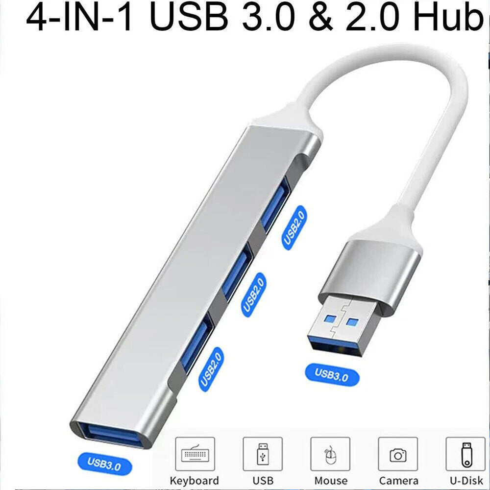 Multi USB 3.0 Hub 4 Port High Speed Slim Compact Expansion Smart Splitter Type-C