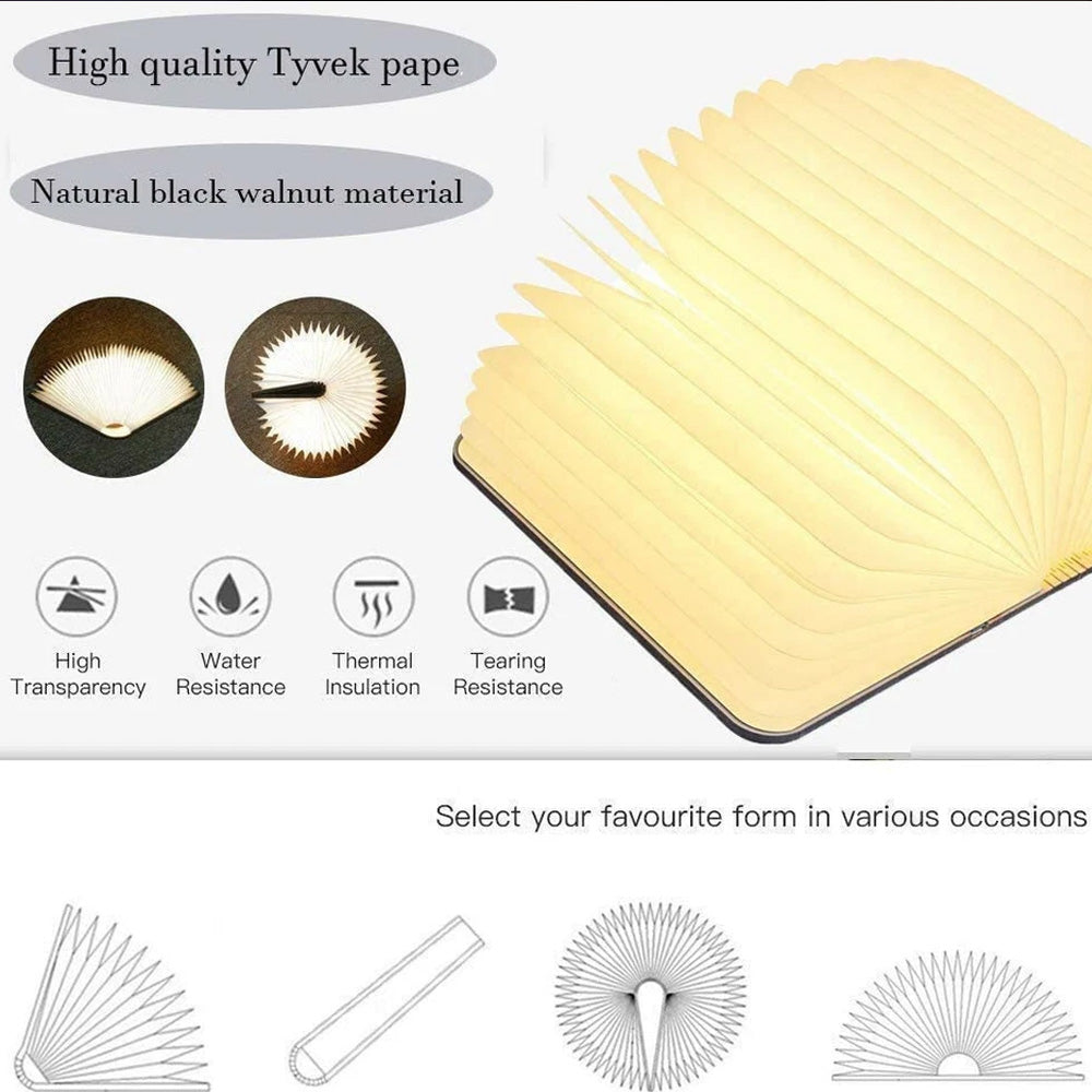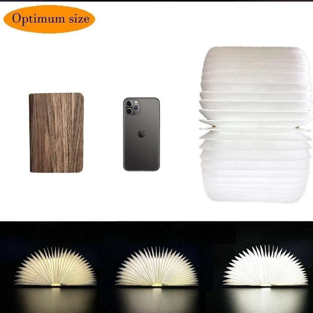 Discover the magic of light with this innovative LED Folding Book Lamp! Crafted from eco-friendly wood and featuring laser-cut precision, this unique lamp combines artistry with functionality. Simply open the book to turn on the light, and close it to power off – that easy! With its 360-degree magnetic folding design, you can shape it into a table lamp, wall light, or pendant lamp to create the perfect ambiance. Powered by a built-in 2500mAh battery (6-hour runtime) and delivering 500 lumens of adjustable white light, this portable wonder is perfect for reading, decorating, or adding a touch of elegance to any space.