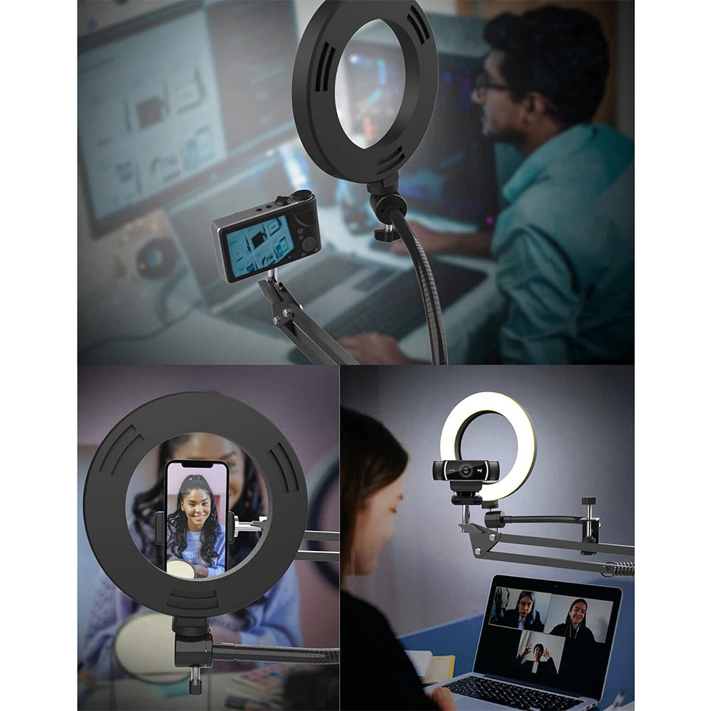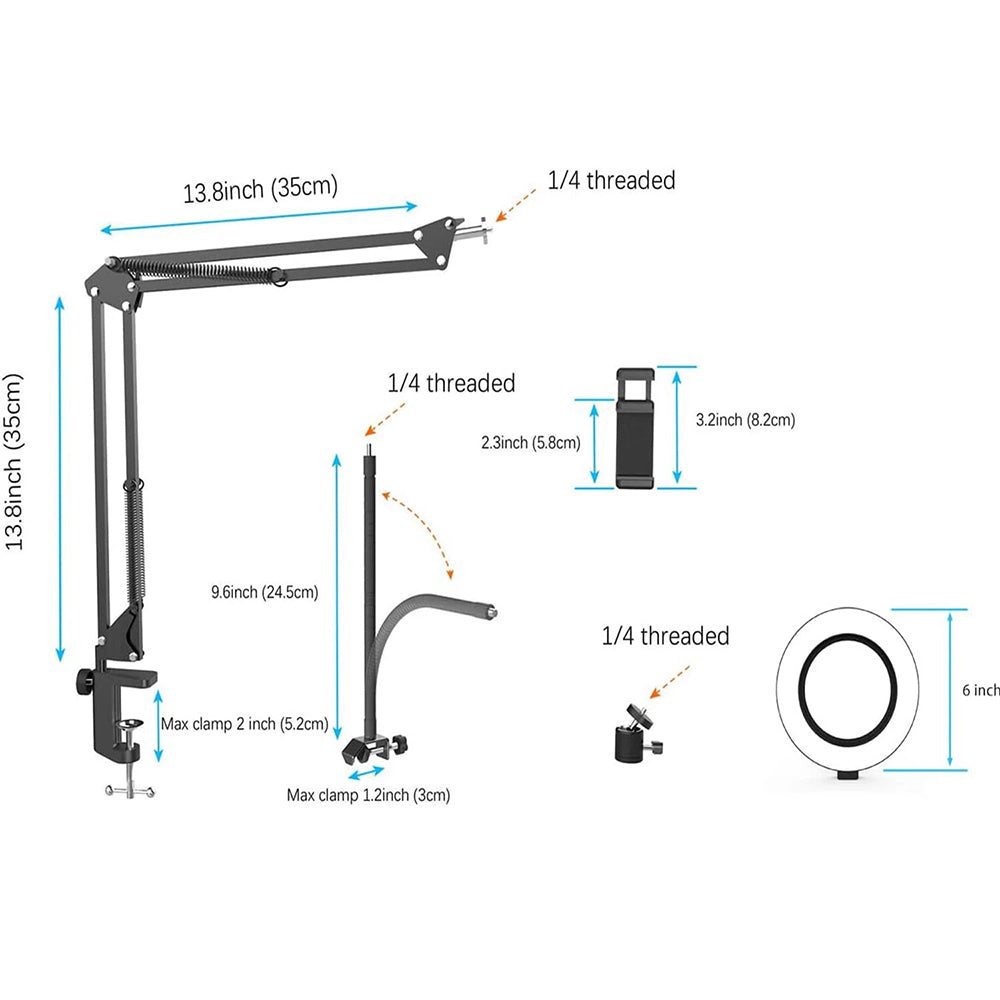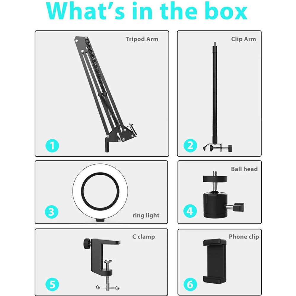 Overhead Phone Mount with Ring Light, Flexible Arm Tripod Phone Camera Holder