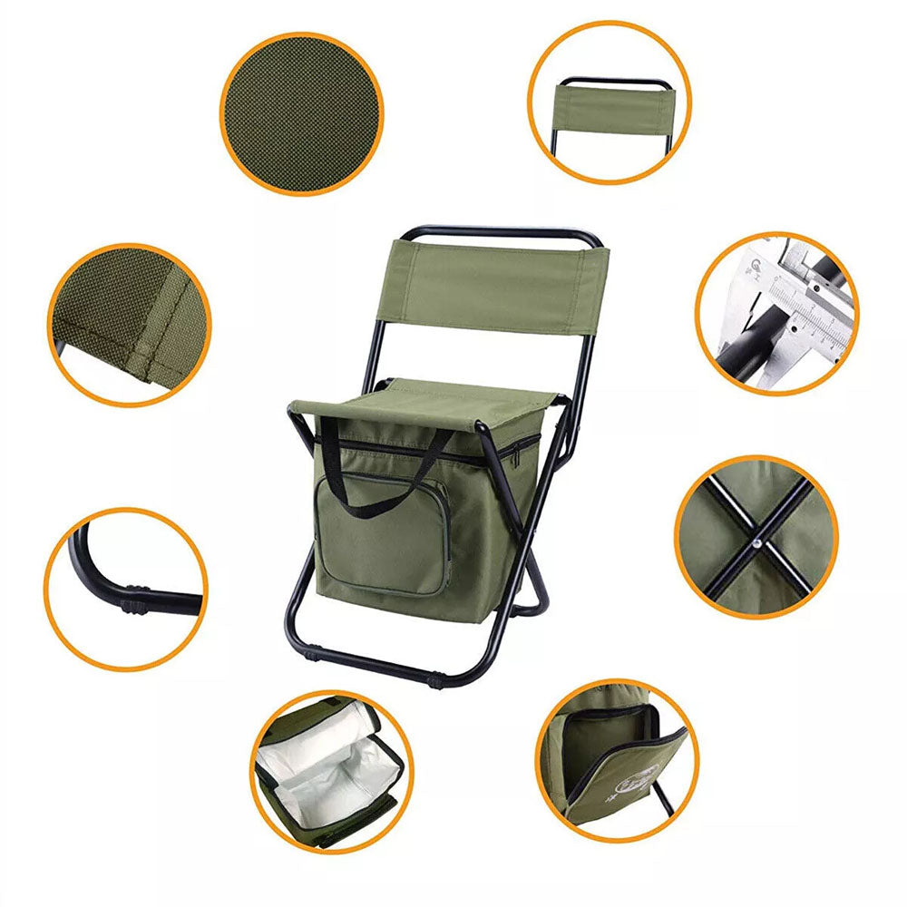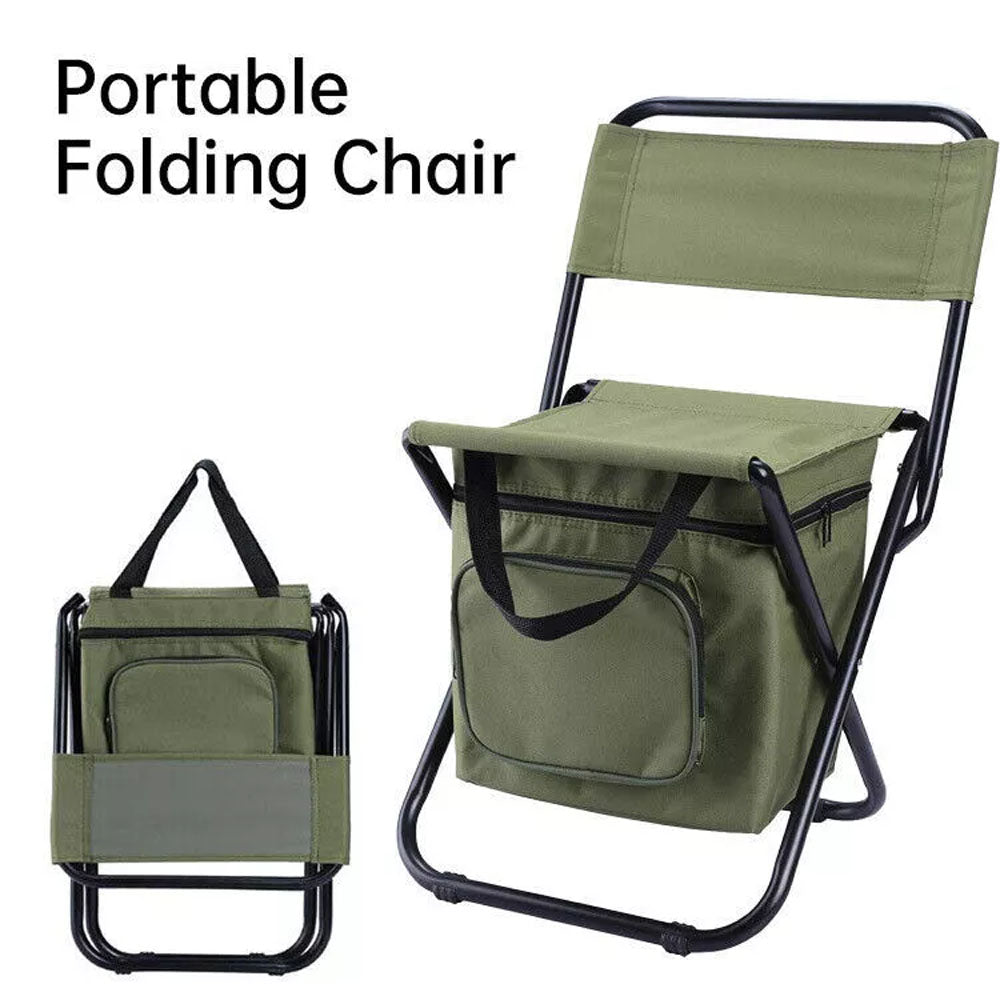 Portable Camping Chair with Cooler Bag Compact Folding Fishing Stool Backrest (Green)