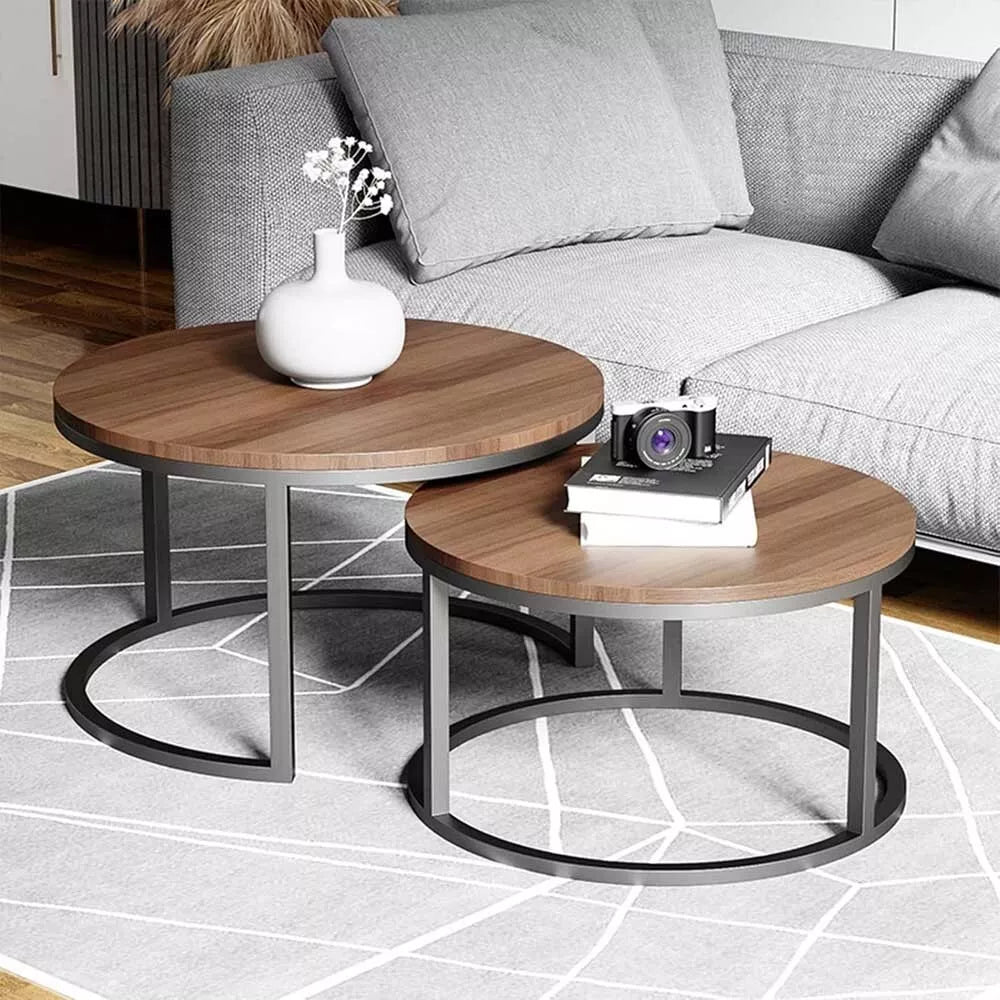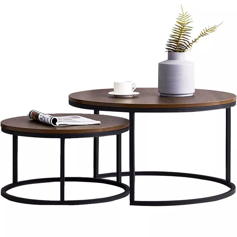 Set of 2 Round Wood Coffee Table Nesting Table End Sofa Bedside Side Furniture