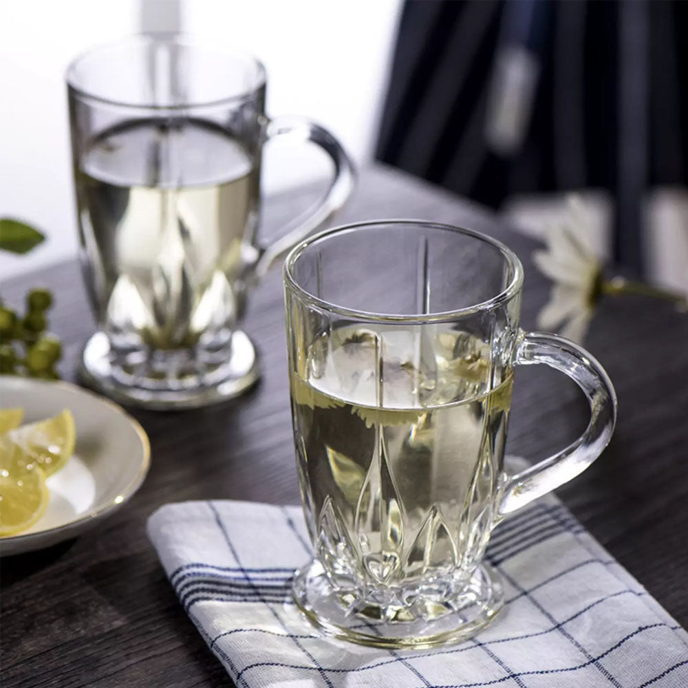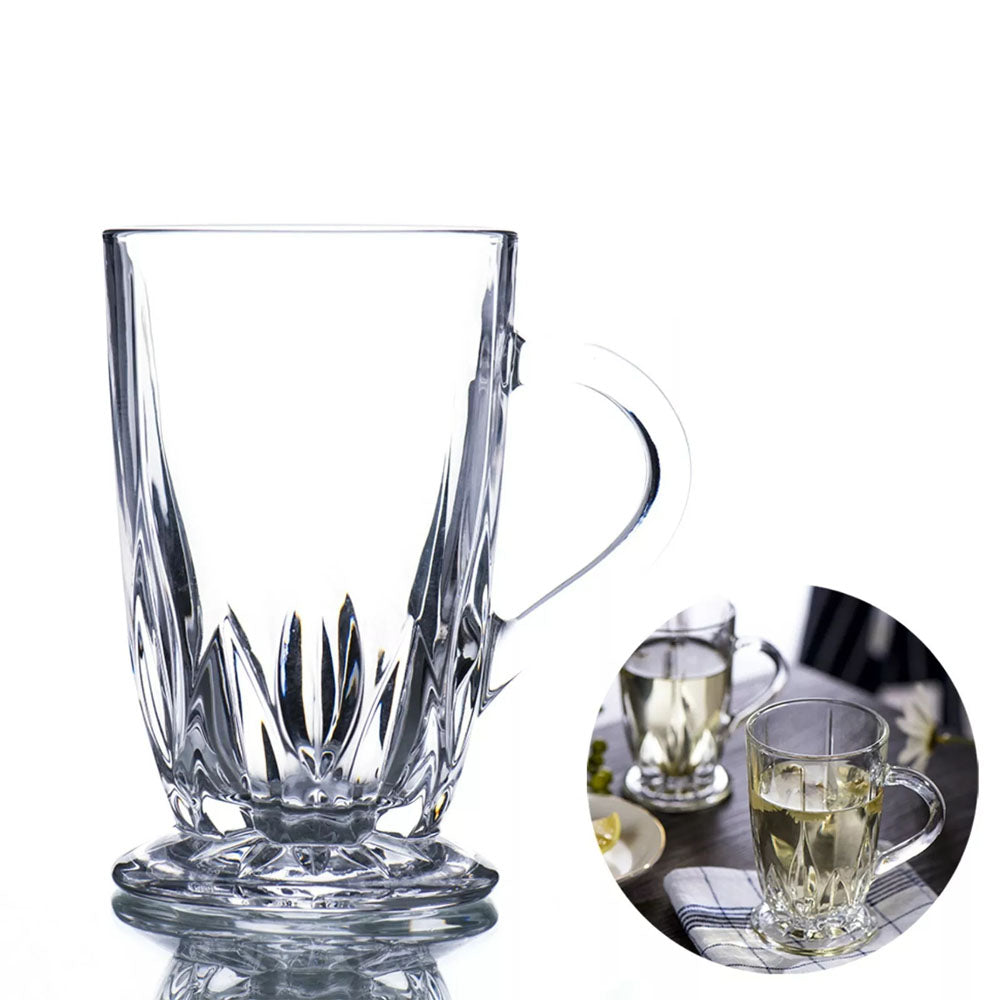 Set of 6 Crystal Glass Mugs w Handle Tea Coffee Hot Cold Drink Beverage 285ml