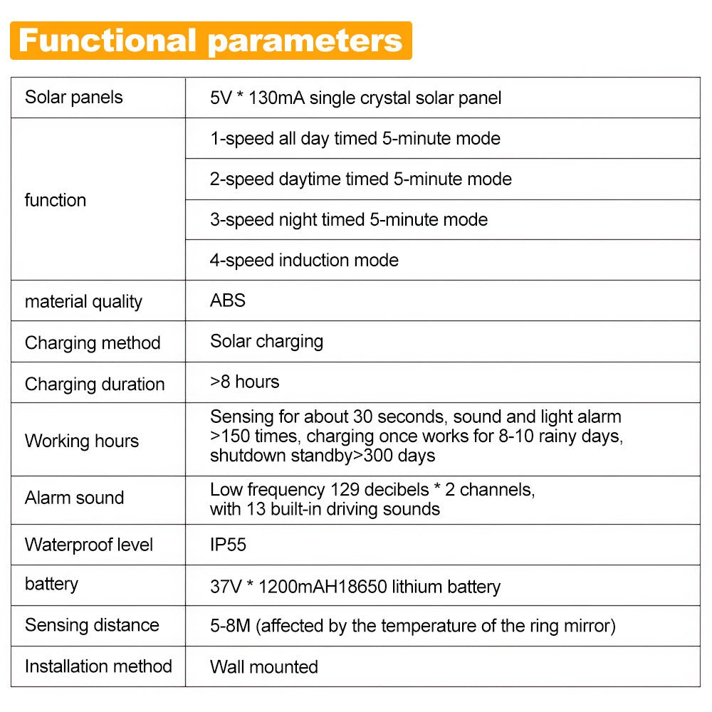 Protect your home and property with this advanced motion sensor alarm system. Designed to scare away intruders and deter unwanted "explorers," this alarm effectively safeguards your space from potential threats. With its integrated sensor, solar-powered design, and customizable alarm sounds, you can rest assured that your property will be safe and secure. It’s time to stop worrying about damage from trespassers—our sensor alarm takes care of it for you!