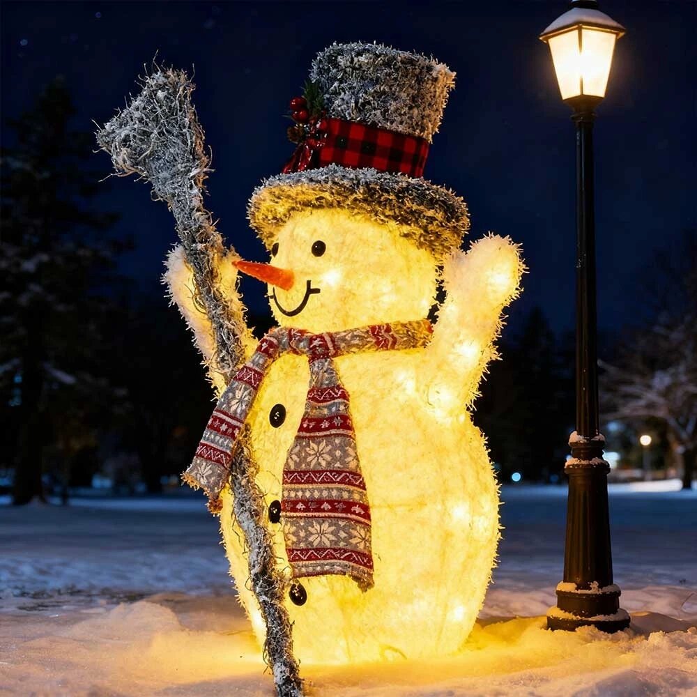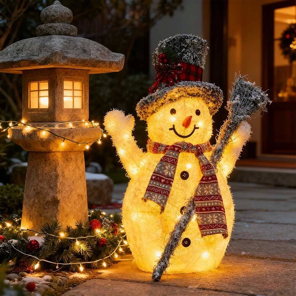 Solar powered Christmas Decoration Lights Snowman Metal Frame LED Light Iron 65cm