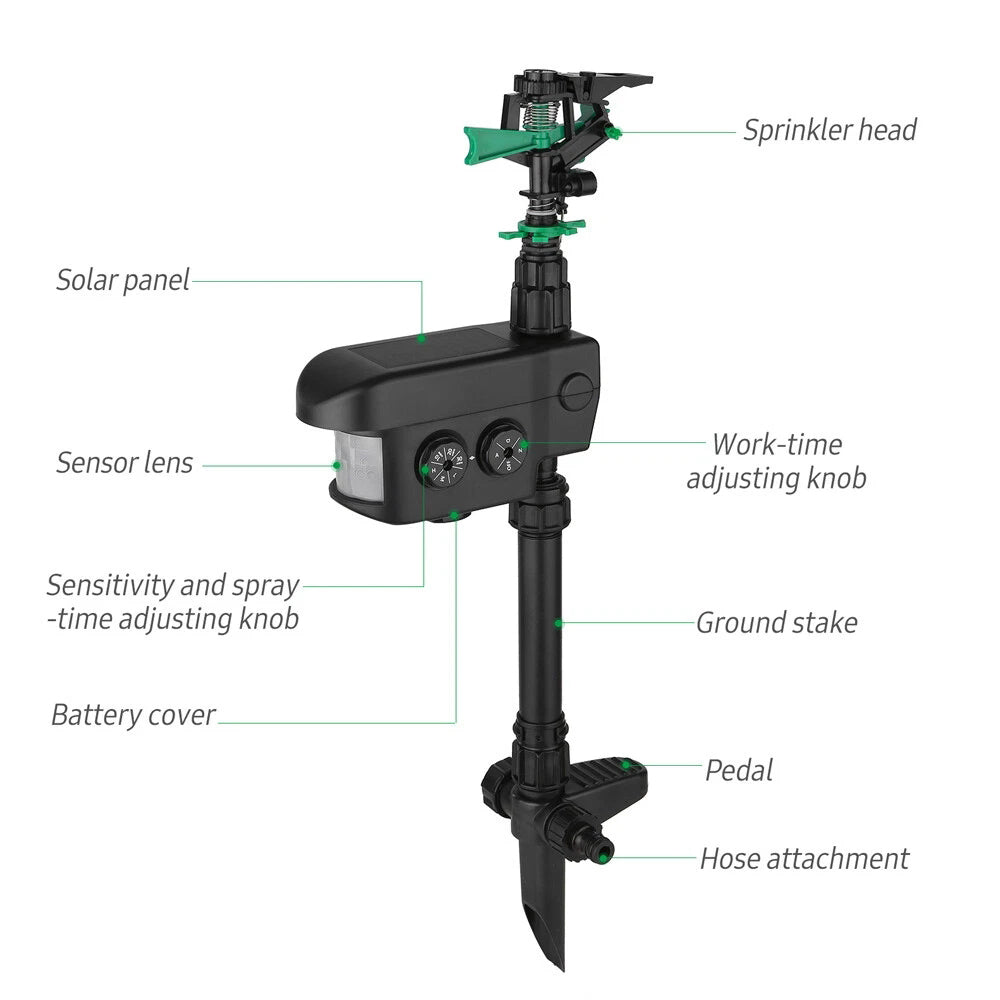 Solar Powered Motion Sensor Activated Animal Repeller Repellent Water Sprinkler