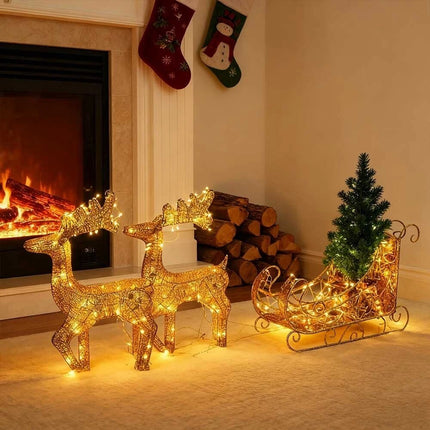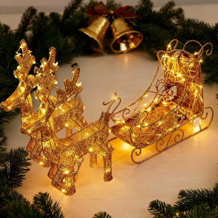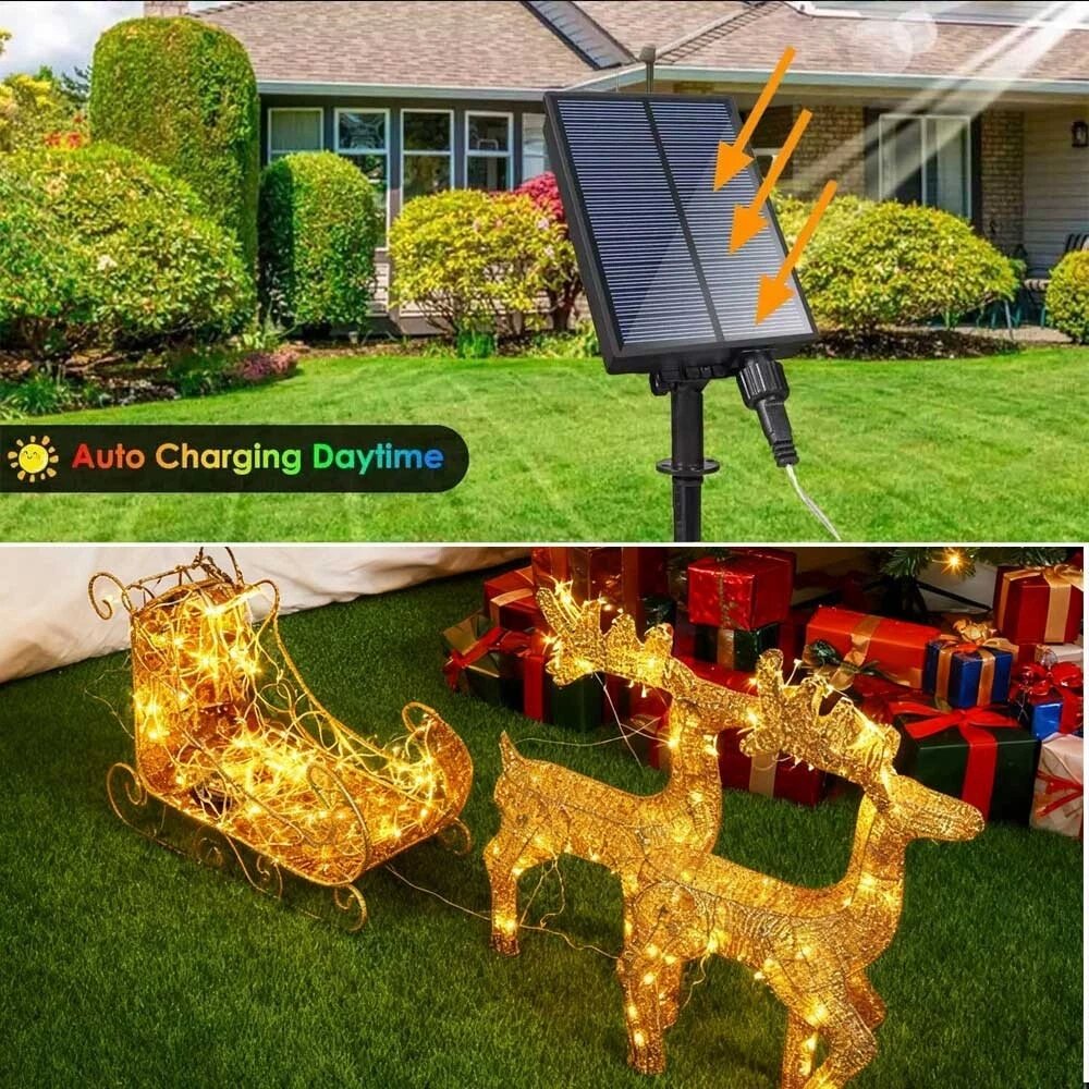 - 1 x Pre-lit Solar-Powered Sleigh (with built-in LED lights and solar panels)