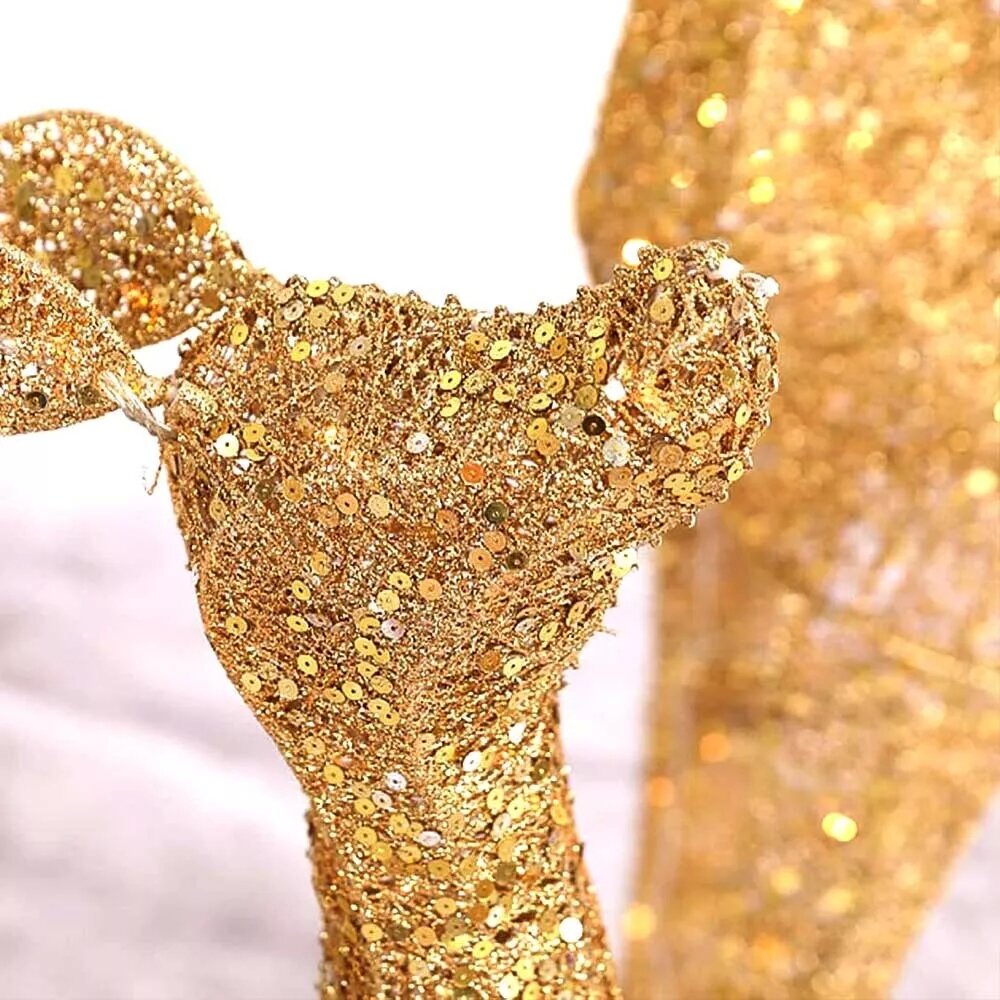 - Material: Metal frame with gold glitter finish, weather-resistant plastic components