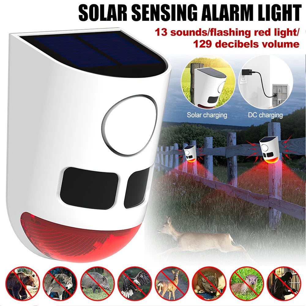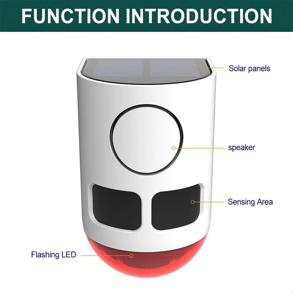 Solar Strobe Alarm Light Motion Sensor Siren 120dB