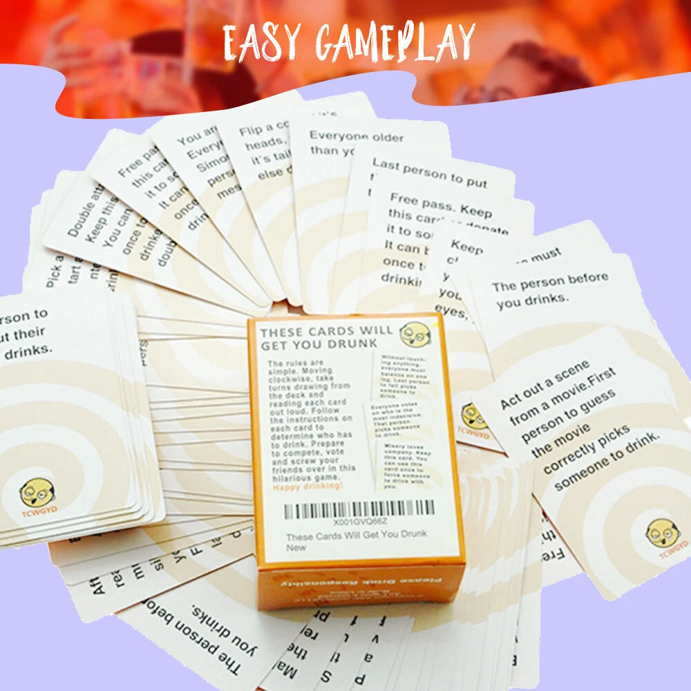 Get ready to break the ice and become the ultimate party starter with this hilariously unpredictable adult drinking card game! Designed to have you and your friends laughing out loud, every round is a fresh adventure. With 100 dynamic and engaging cards, you'll compete, vote, and pull surprise moves on each other, ensuring that no two games are ever the same. The rules are super easy to learn in minutes, making it the perfect addition to any party, pre-game, or night in. Perfect for 2-8 players aged 21 and over. Whether your drink of choice is beer, wine, a shot, or even water, this game delivers non-stop fun. Remember to always drink responsibly and let the good times roll!