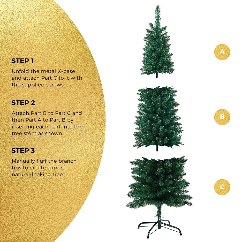 There's no better way to usher in the holiday season than with a beautifully adorned Christmas tree. The Slim Christmas Tree offers an elegant and realistic design that will bring the magic of Christmas to your home. With its thick, dense foliage and flexible branches, this tree captures the authentic look and feel of a real pine tree. Whether you’re decorating your living room, hall, or any other space, this slim tree fits perfectly into tighter spots without sacrificing the holiday charm. Crafted with high-quality PVC material, the Tinseltown tree stands tall and stable on its sturdy metal base, ensuring long-lasting durability for years to come. With 300 tips for a lush appearance, this tree offers an inviting and festive centerpiece for your Christmas celebrations. Quick and easy to assemble, it can be set up in no time, and its reusable nature makes it an eco-friendly choice for future seasons.