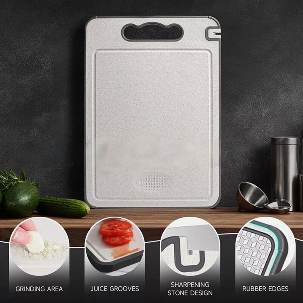 • Time-Saving Design: Equipped with a deep juice groove that can hold up to 200ml of liquid, this cutting board prevents spills and mess. It also features a sharpening edge and a milling zone for garlic and ginger grinding, allowing you to save time on food prep.