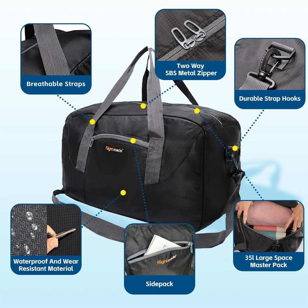 With a generous 35L capacity, it offers plenty of room for clothing, gear, and accessories. When not in use, simply fold it into its own pocket for easy storage—taking up only a fraction of the space of a regular bag. Whether as your main luggage, a gym bag, or an emergency “just-in-case” travel bag, this duffel combines functionality, style, and convenience.