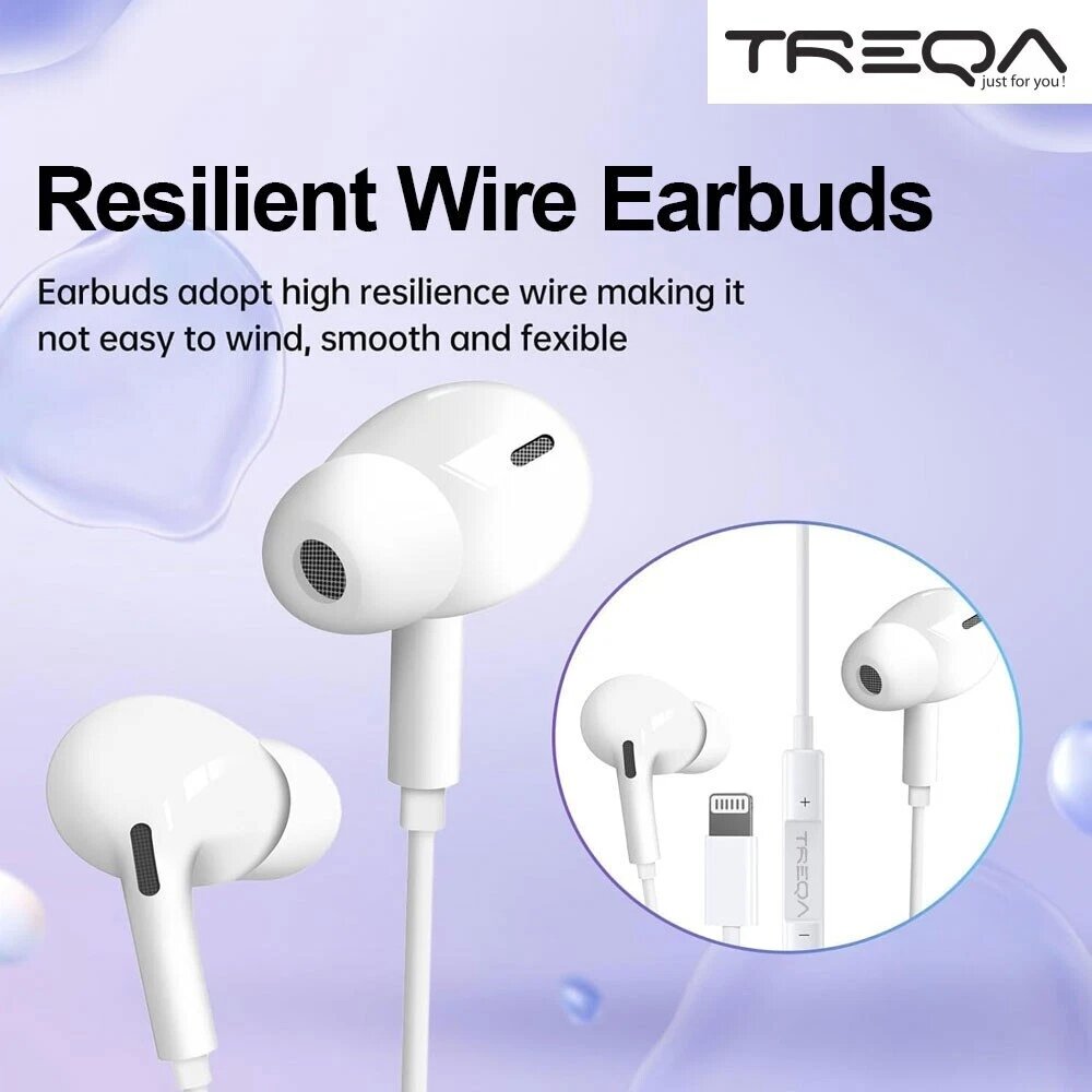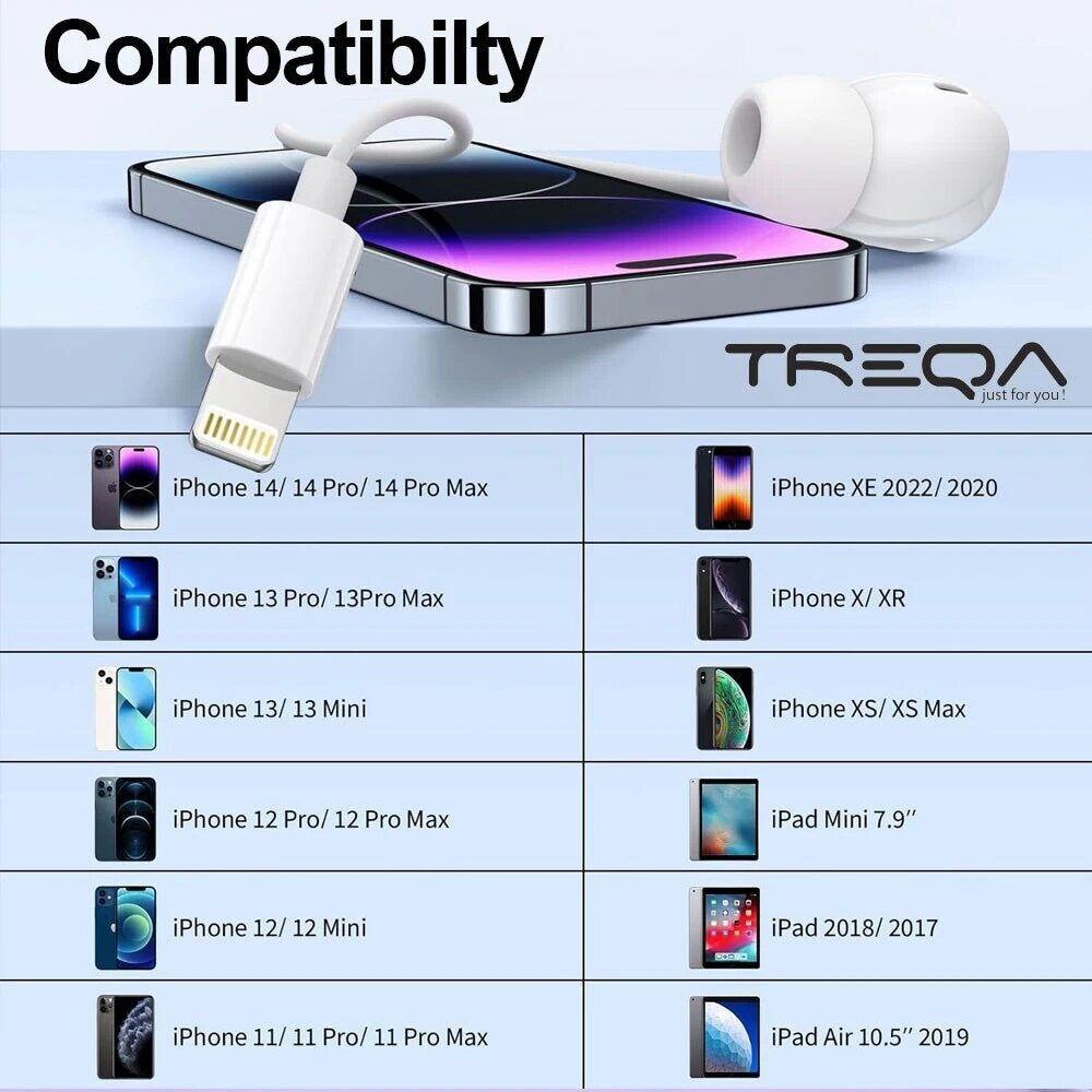 TREQA Earphone For iPhone 14 13 12 11 SE Pro Max Wired in-Ear Earbuds Headphones