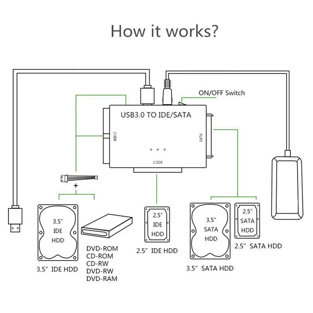 Unlock the full potential of your storage devices with this versatile USB 3.0 to SATA/IDE Adapter. Designed for professionals and DIY enthusiasts, this powerful tool allows you to access and transfer data among three HDD/SSD drives simultaneously—supporting SATA II, 3.5” IDE, and 2.5” IDE interfaces. With blazing-fast transfer speeds up to 5 Gbps via USB 3.0 and broad compatibility across multiple operating systems, it’s the perfect solution for data migration, drive cloning, or recovering files from old hard drives. The built-in ON/OFF switch and LED status indicator ensure safe operation, while plug-and-play functionality makes it easy to use right out of the box.