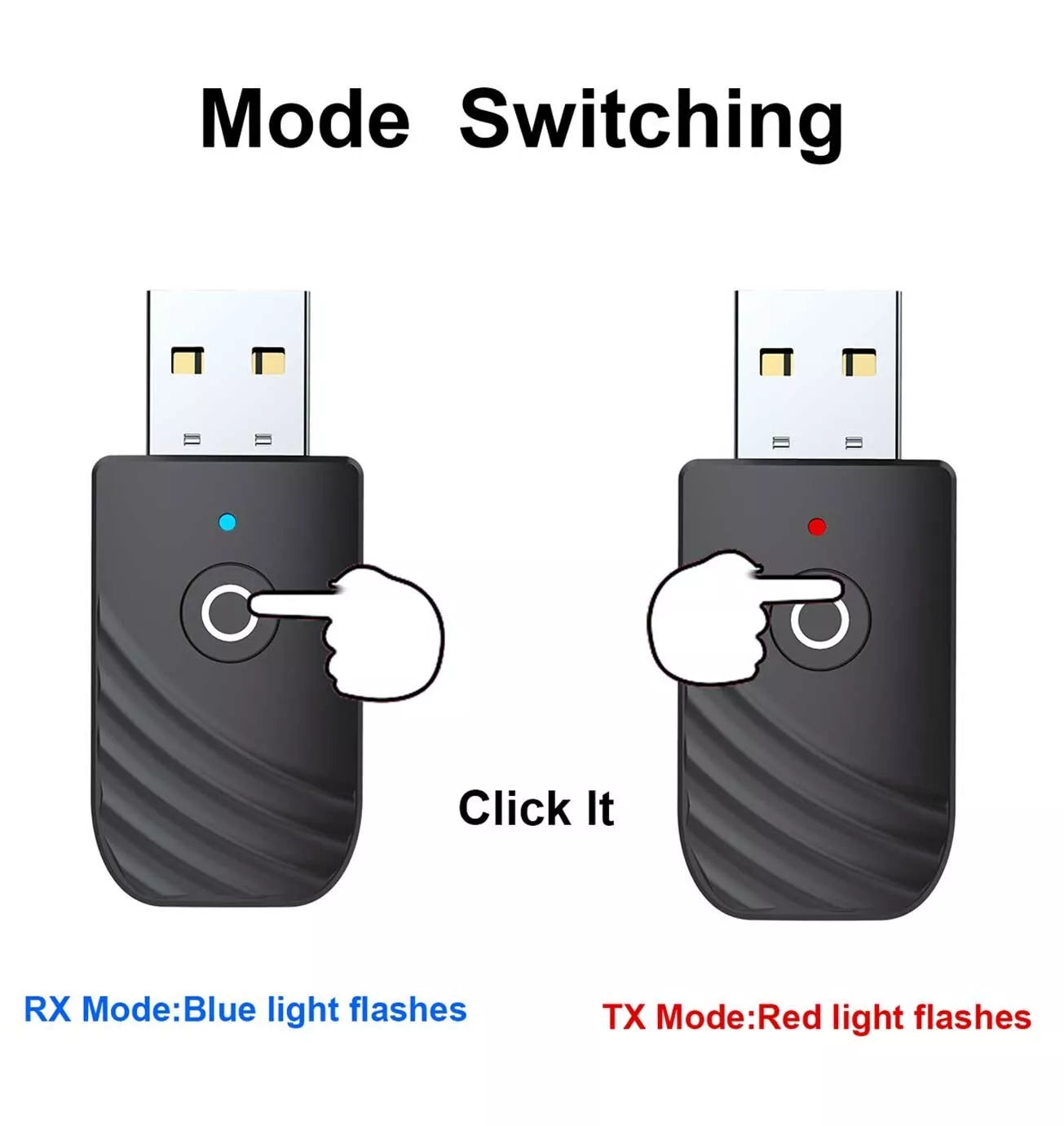 Mode Switching: Switch the mode by toggling the TX/RX switch and clicking the button