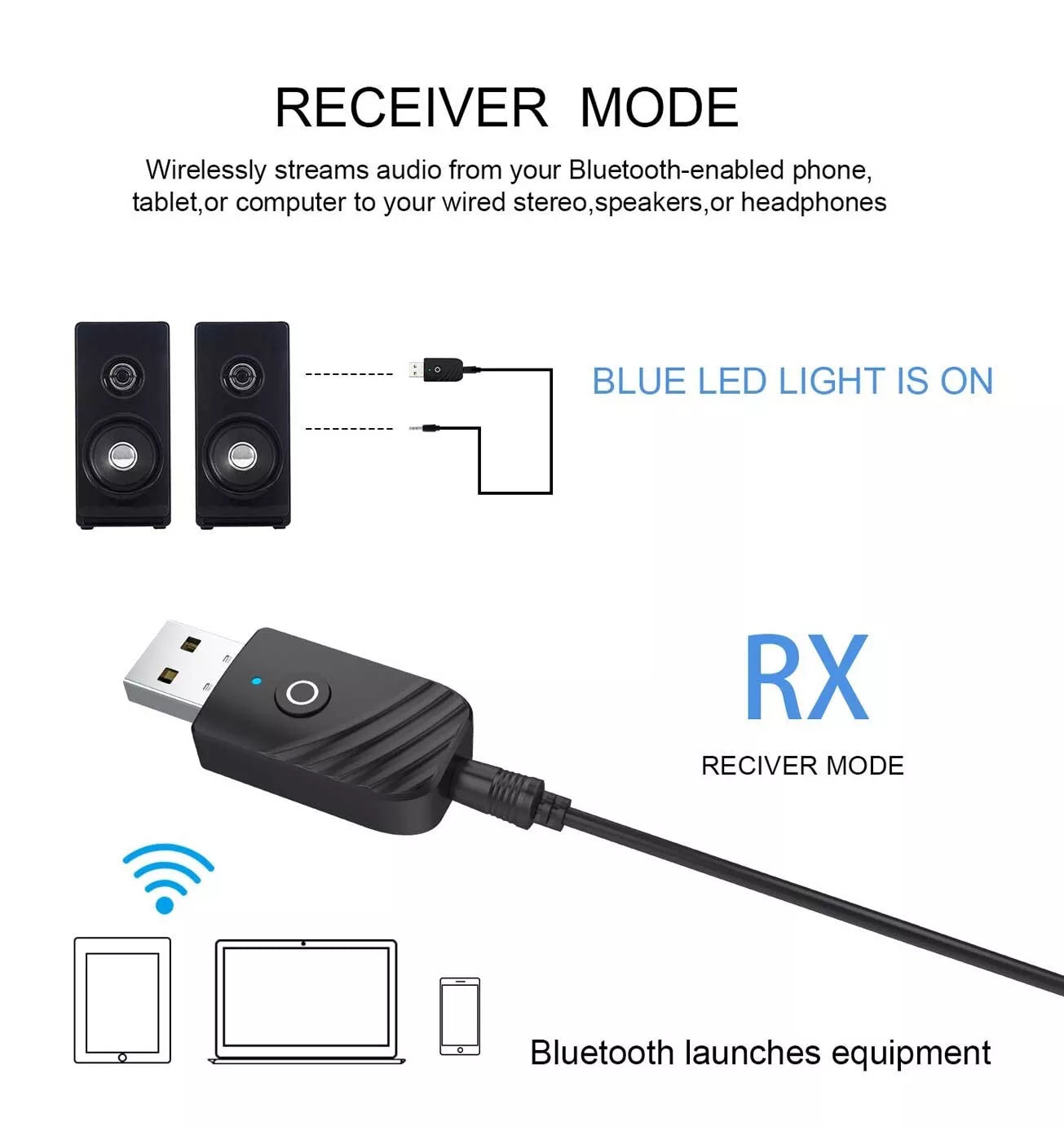 Receiver Mode: Blue LED light is on