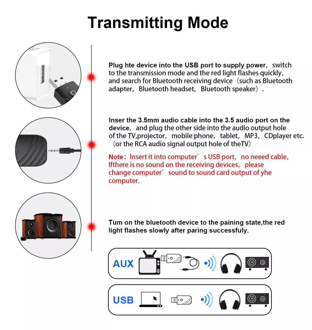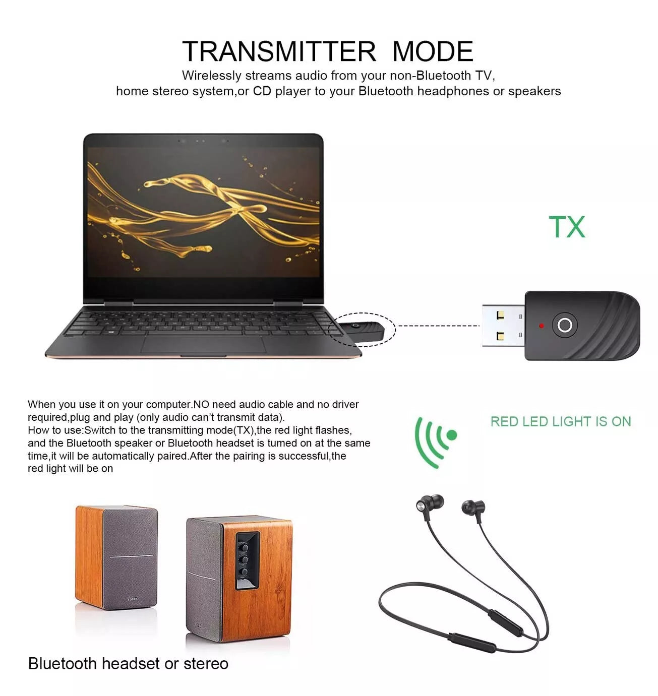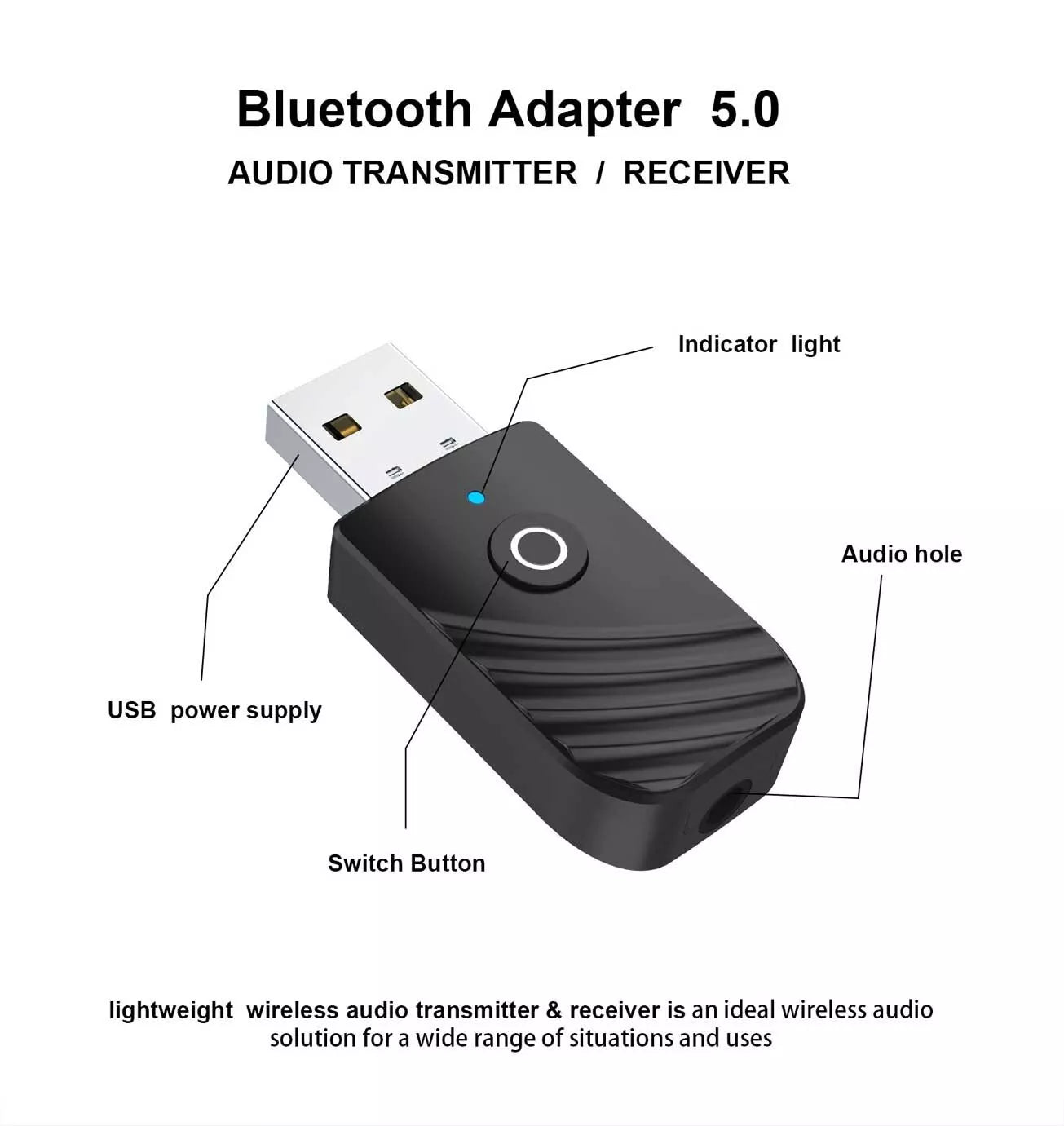 - 1 x 5.0 Bluetooth Receiver Transmitter