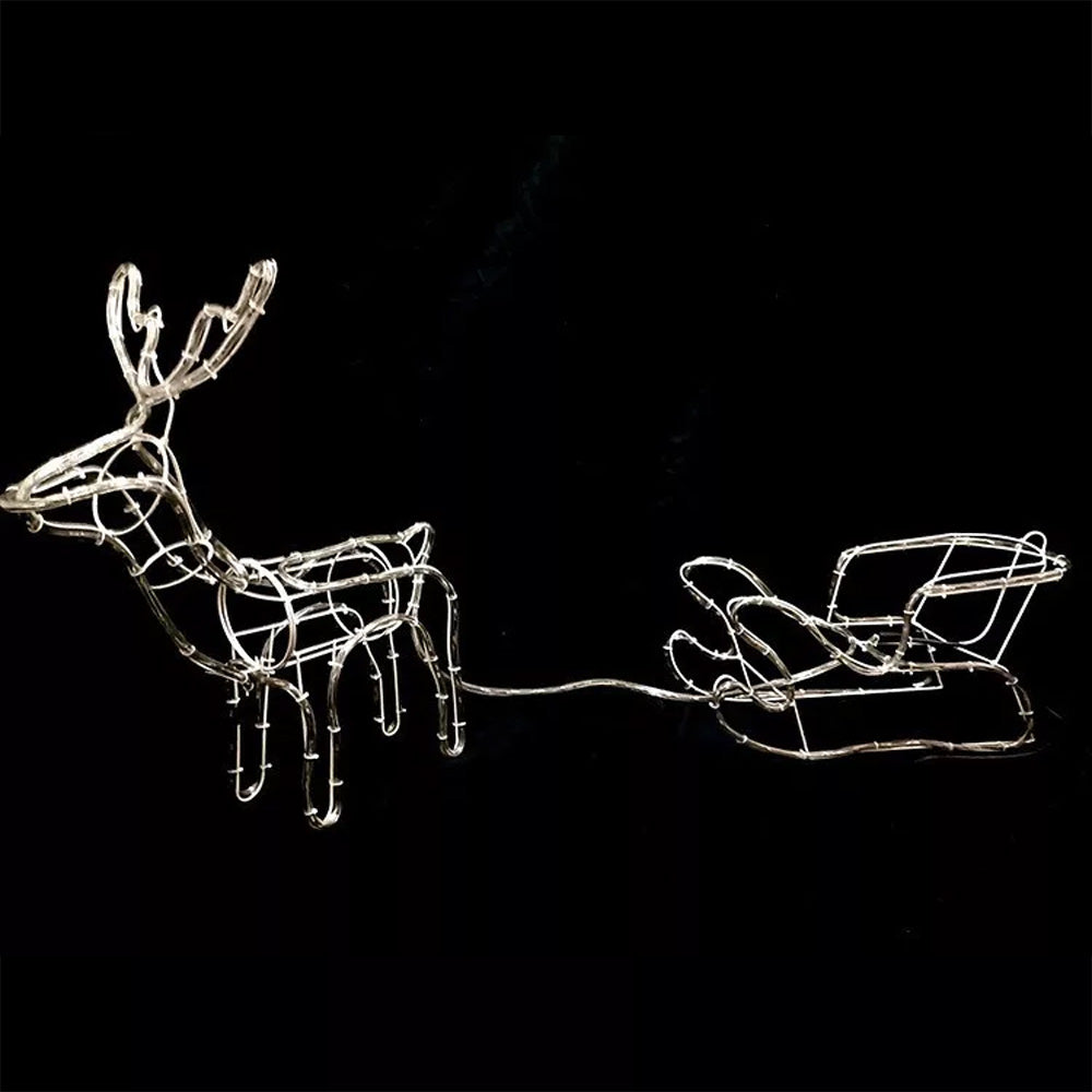 Warm White Reindeer Sleigh Lights Outdoor Christmas Decoration, 3D 1.8M Rope Light Xmas