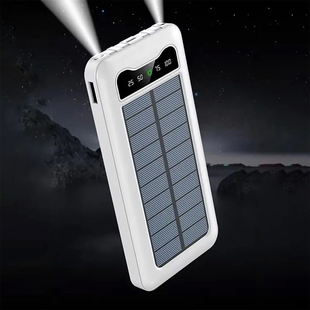 White 10000mAh Solar Power Bank Portable Charger Built-in Cables LED Display Universal