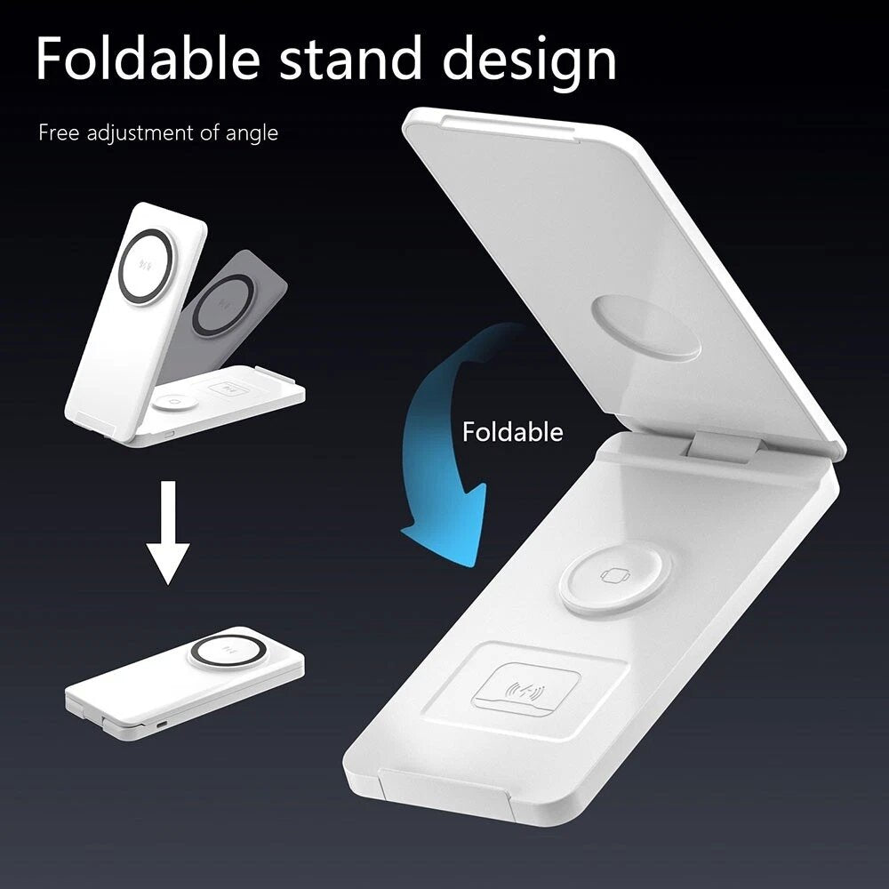 White Foldable Wireless Charger Dock Charging Station For Apple Watch iPhone 16 15