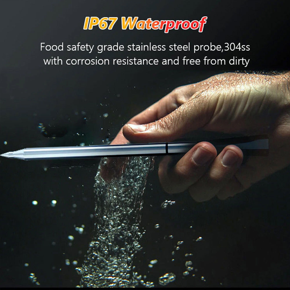 - Waterproof & Heat-Resistant – IP67-rated ceramic and stainless-steel probe built to handle up to 212°F (100°C).