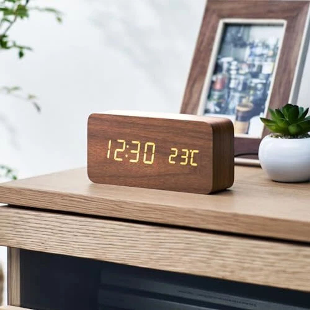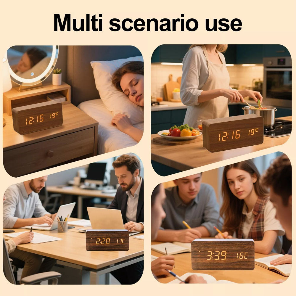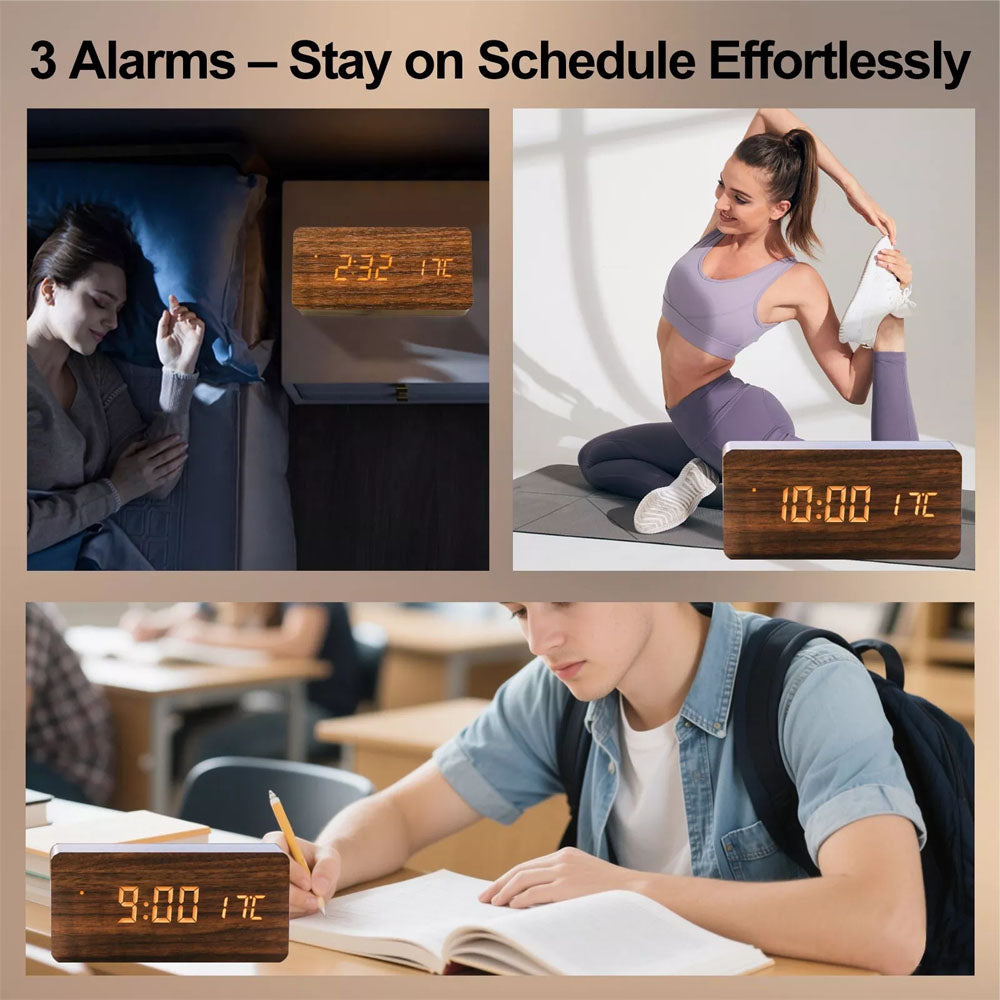 Wooden LED Digital Alarm Clock Temperature Bedside Table Time Display Room Decor